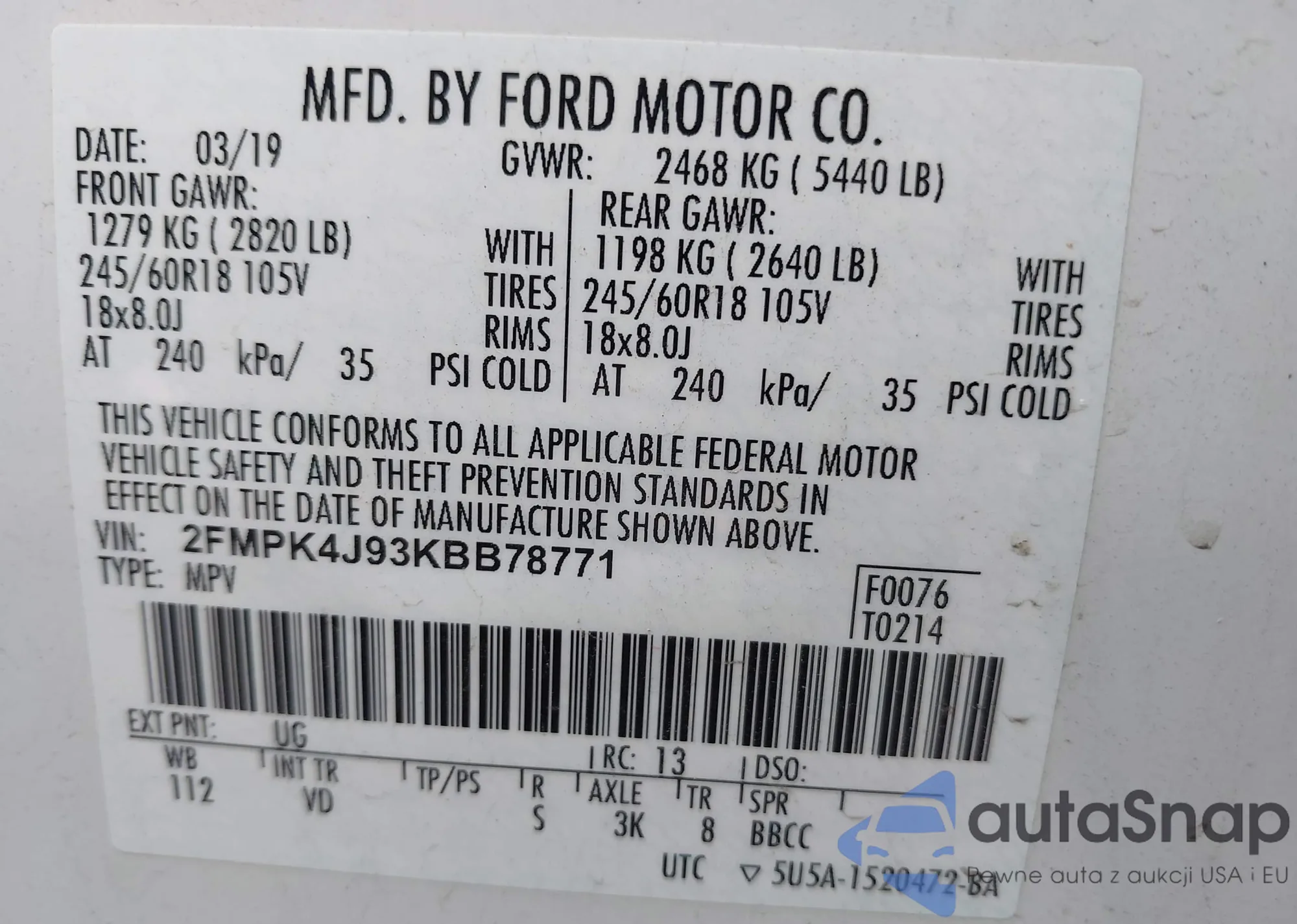 • VIN 2FMPK4J93KBB78771