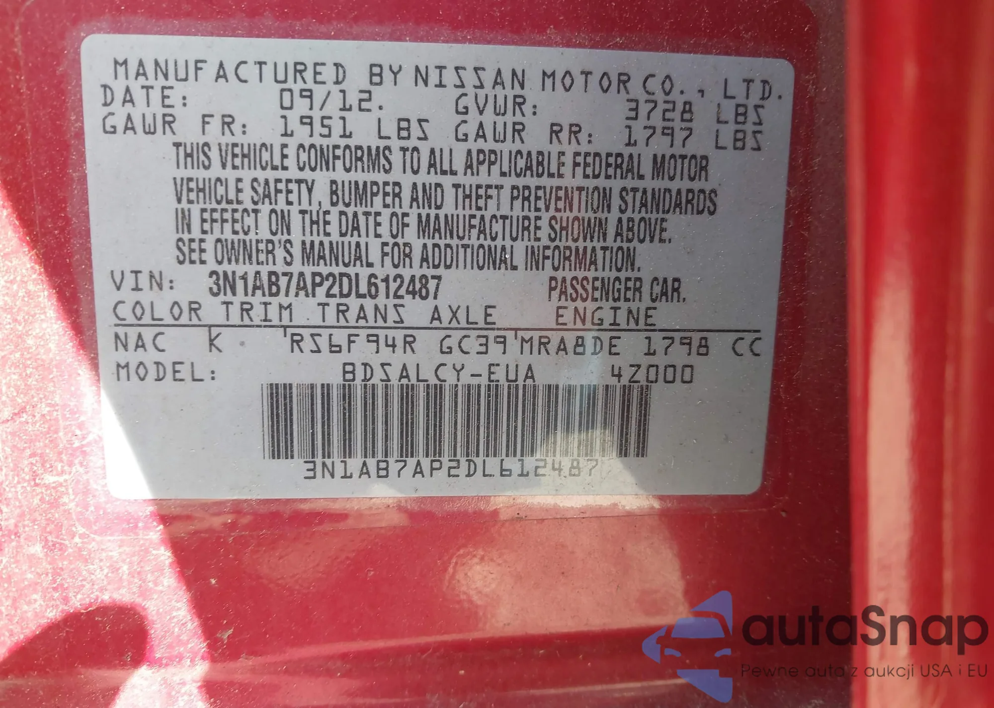 • VIN 3N1AB7AP2DL612487