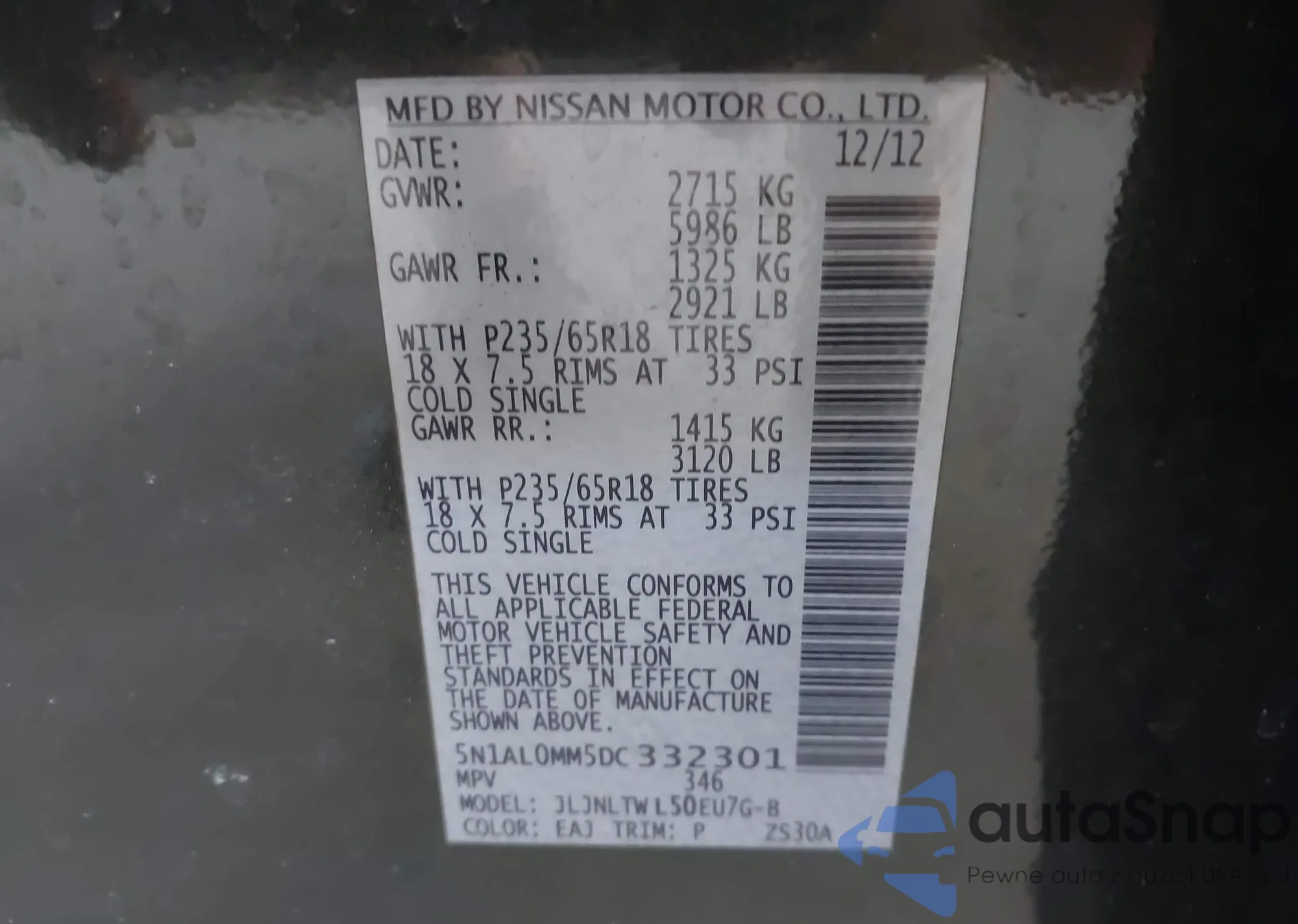 LOT: 42357924 VIN: JN1EV7AR0JM437443