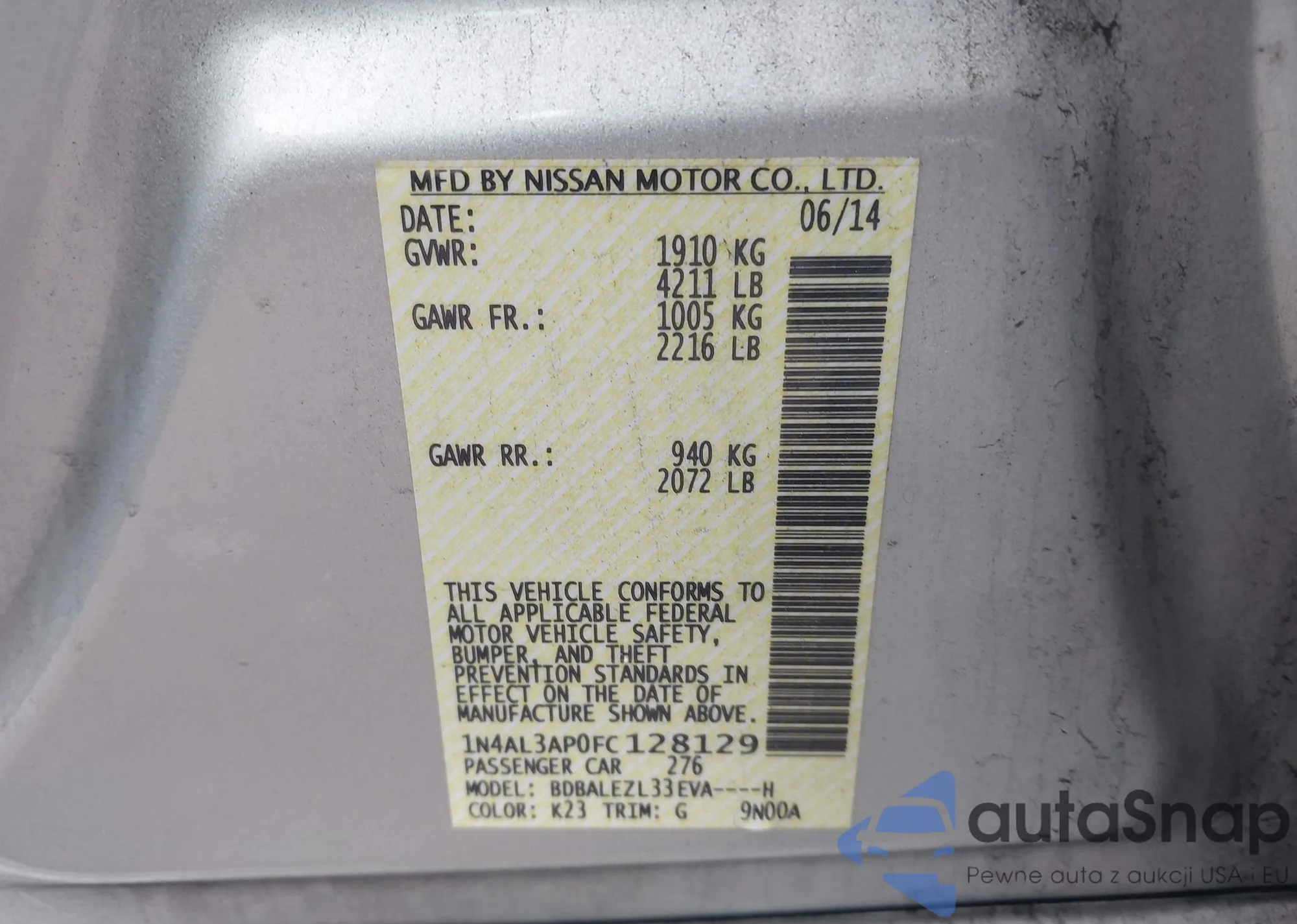 LOT: 42445373 VIN: 1N4AL3AP0FC128129