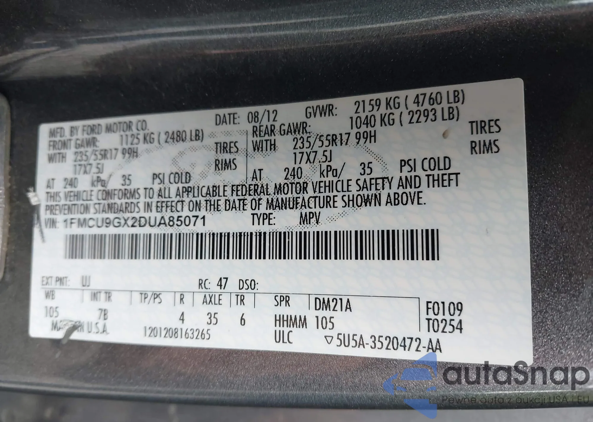 • VIN 2FMDK4KCXDBA28494