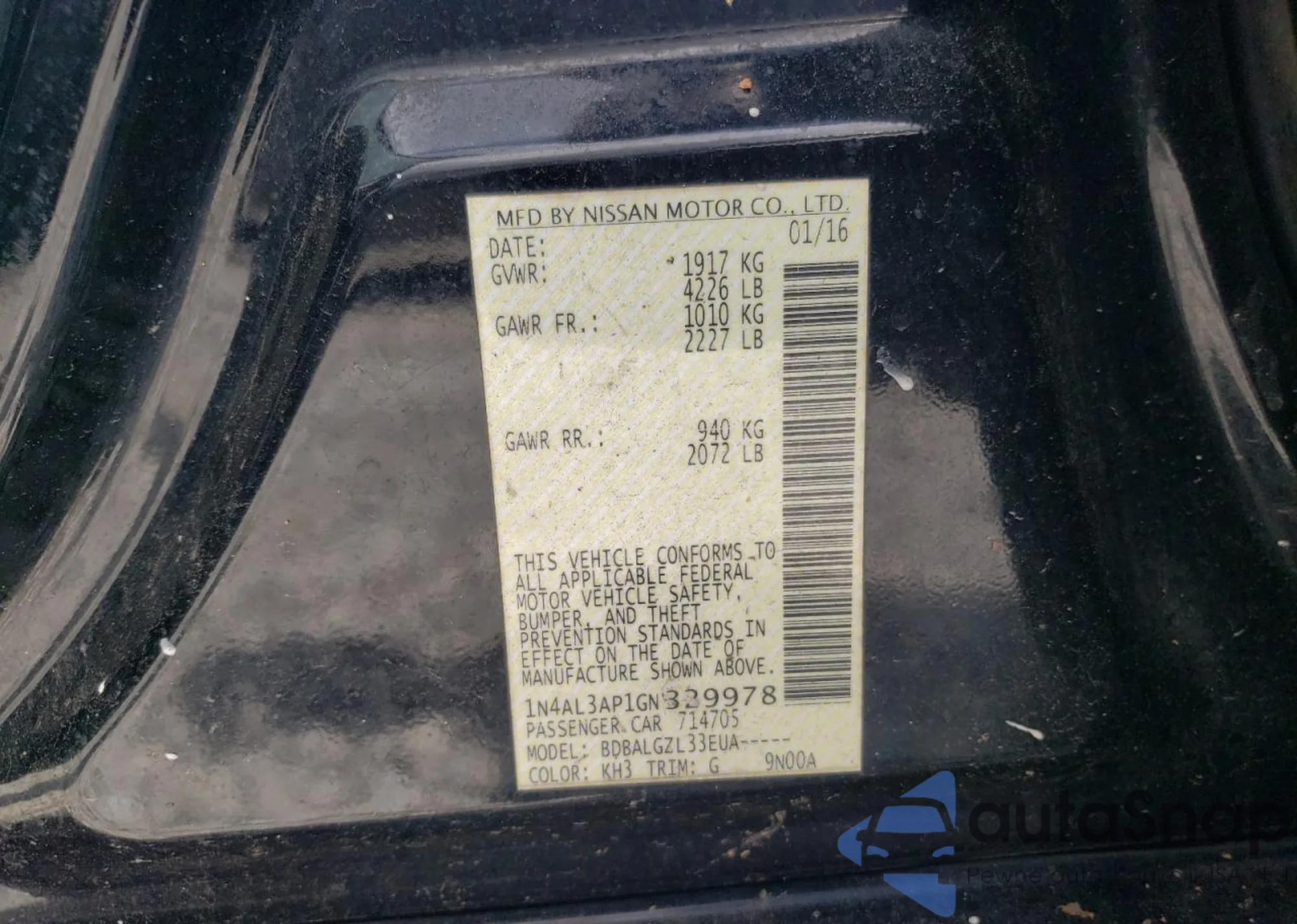 LOT: 56851795 VIN: 1N4AL3AP1GN329978