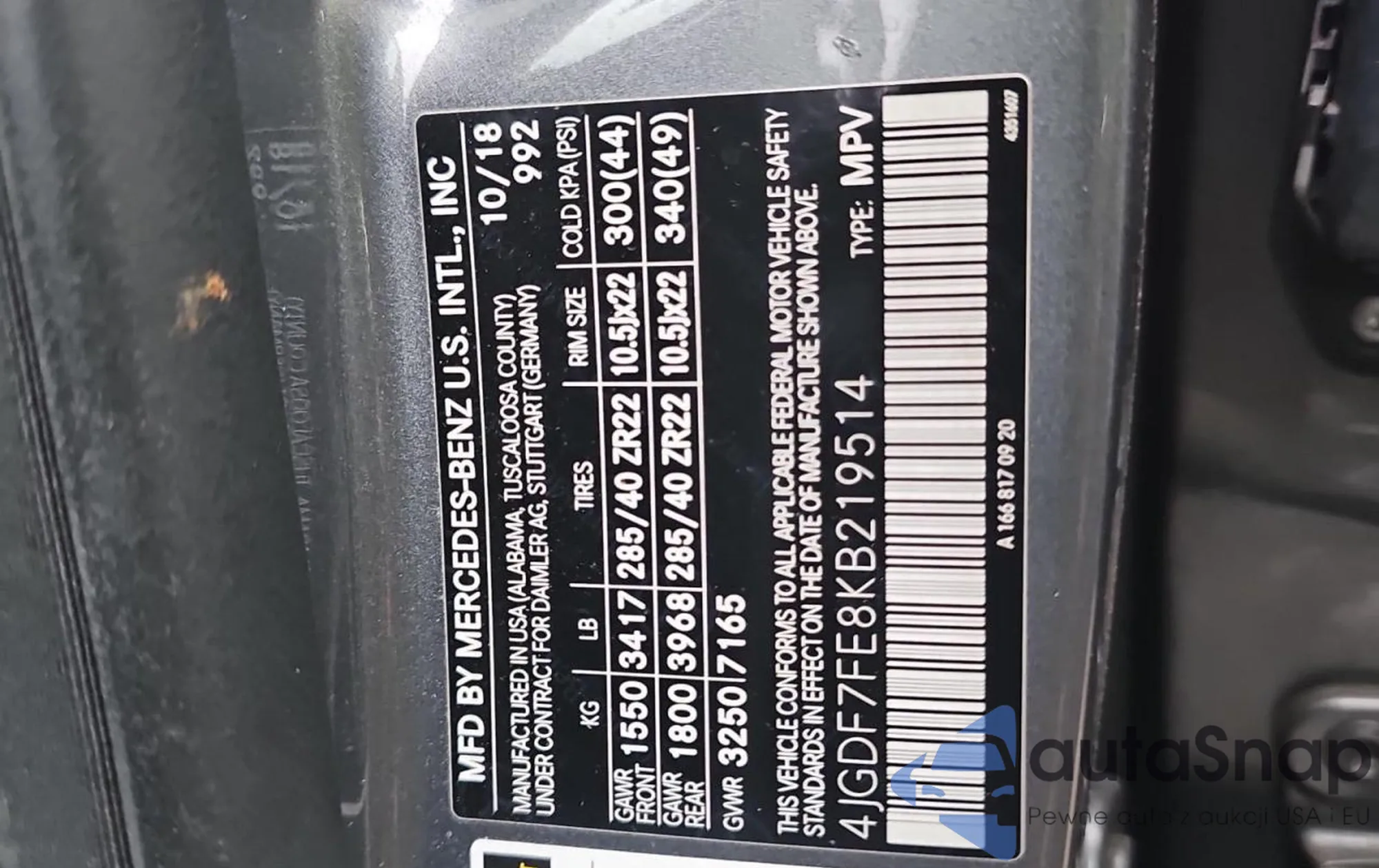 • VIN 4JGDF7FE8KB219514