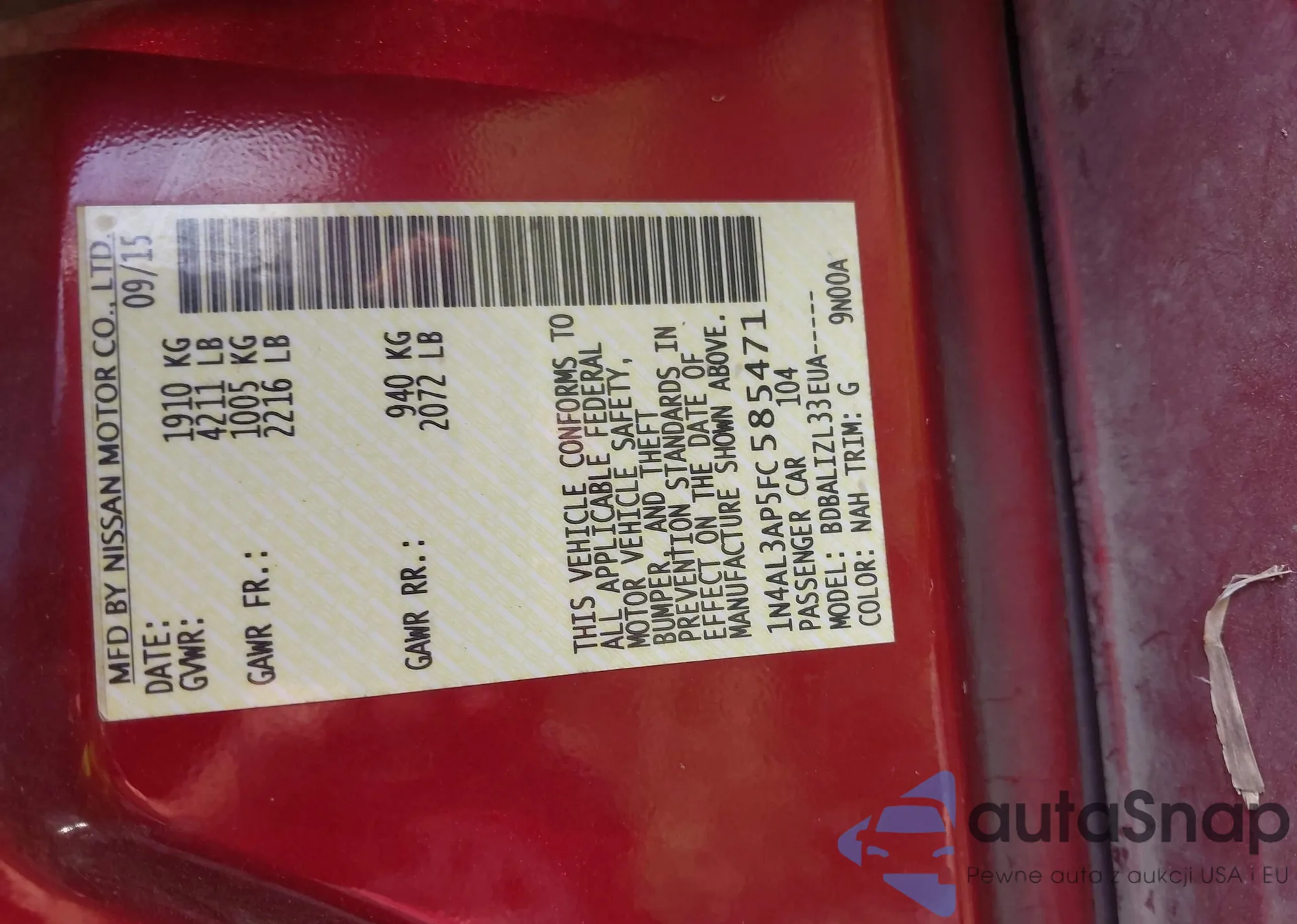 LOT: 41941706 VIN: 1N4AL3AP5FC585471