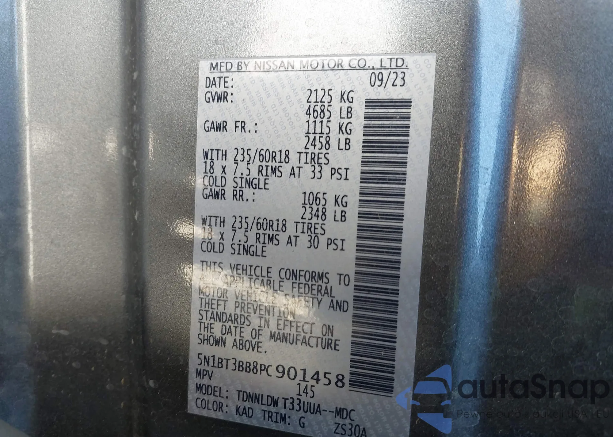 LOT: 41984747 VIN: 5N1BT3BB8PC901458