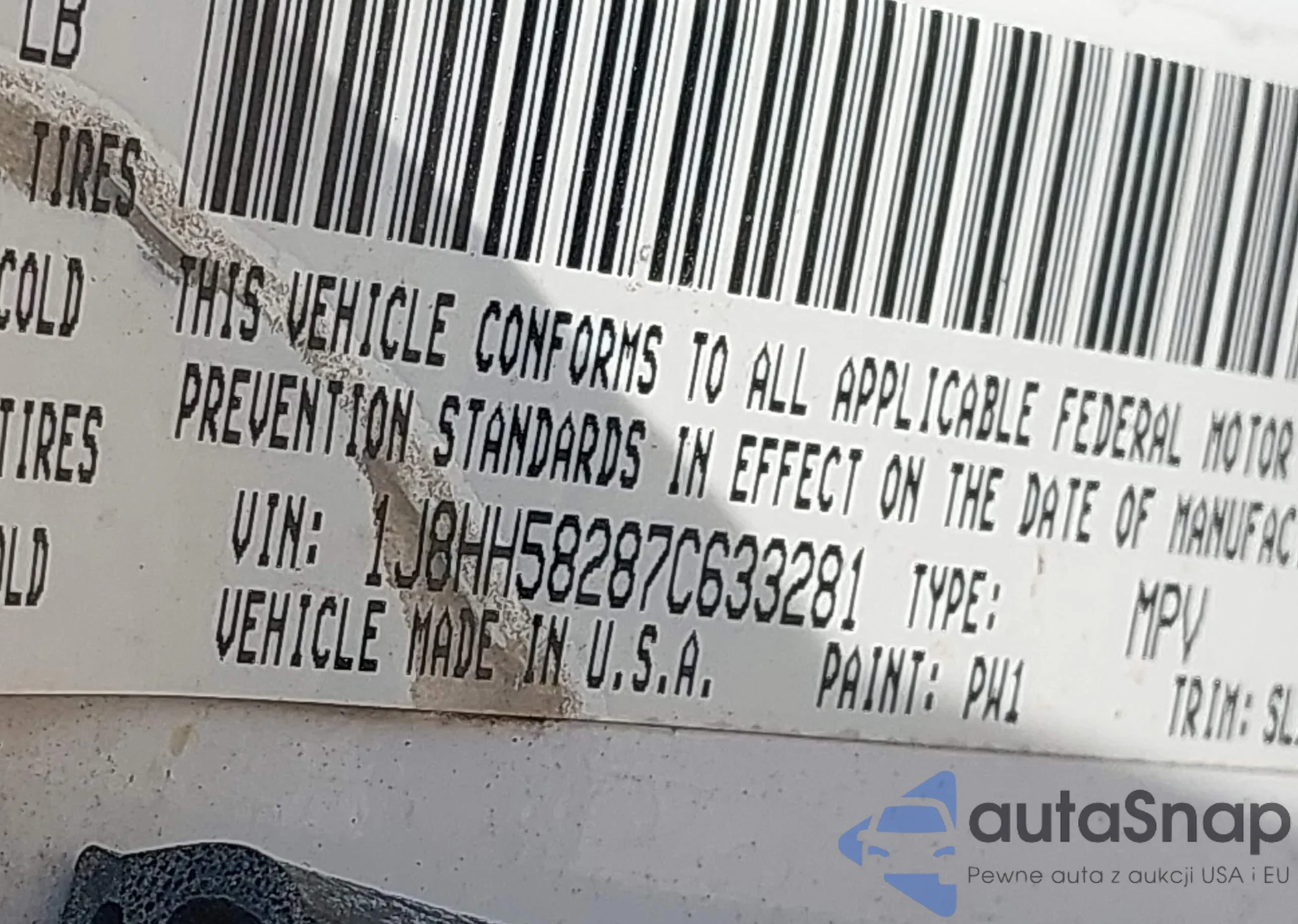 LOT: 42467633 VIN: 1J8HH58287C633281