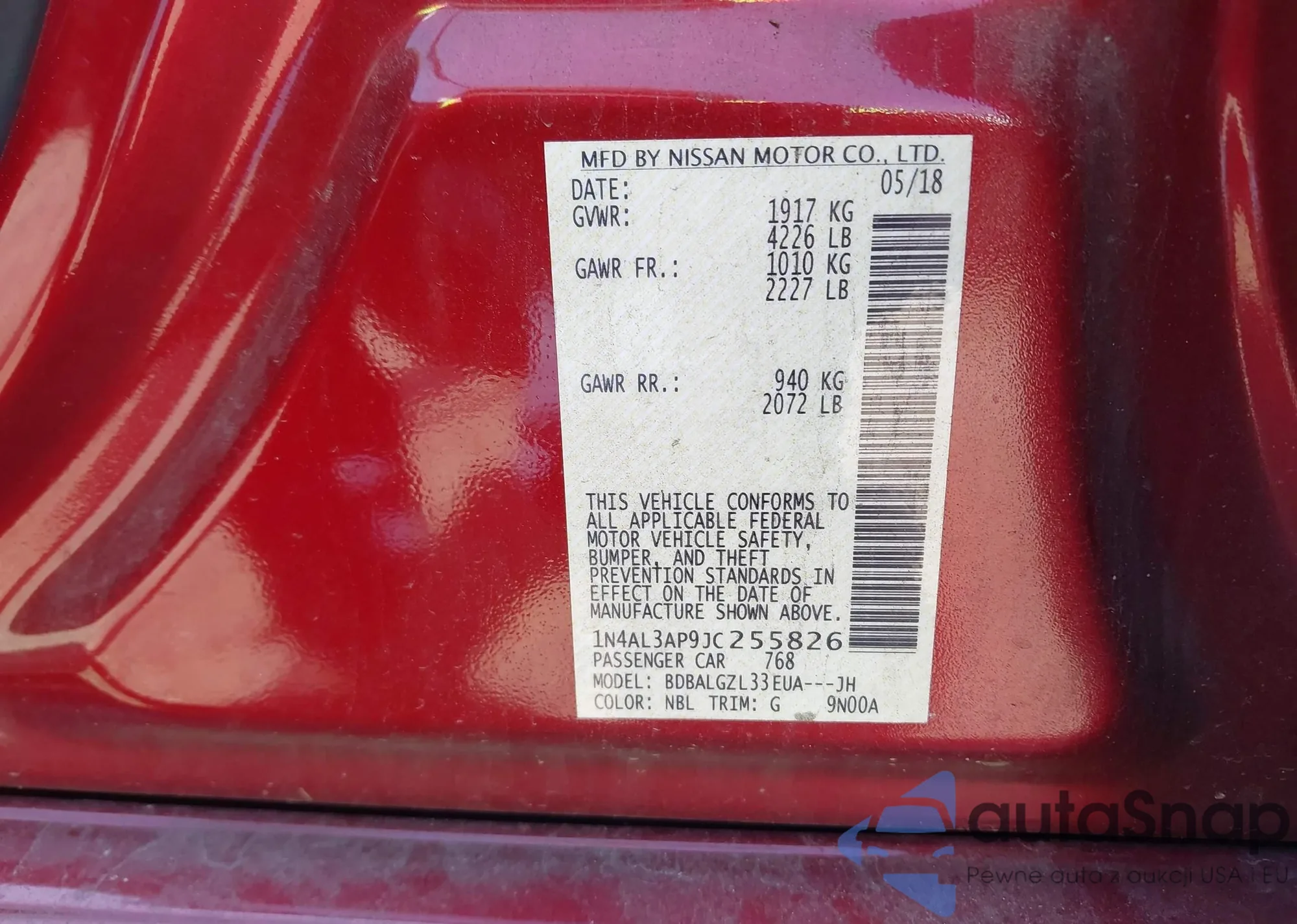 LOT: 42540951 VIN: 1N4AL3AP9JC255826