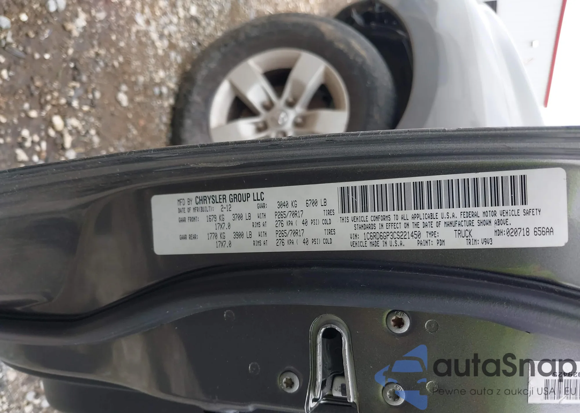 • VIN 1C6RD6GP3CS221450