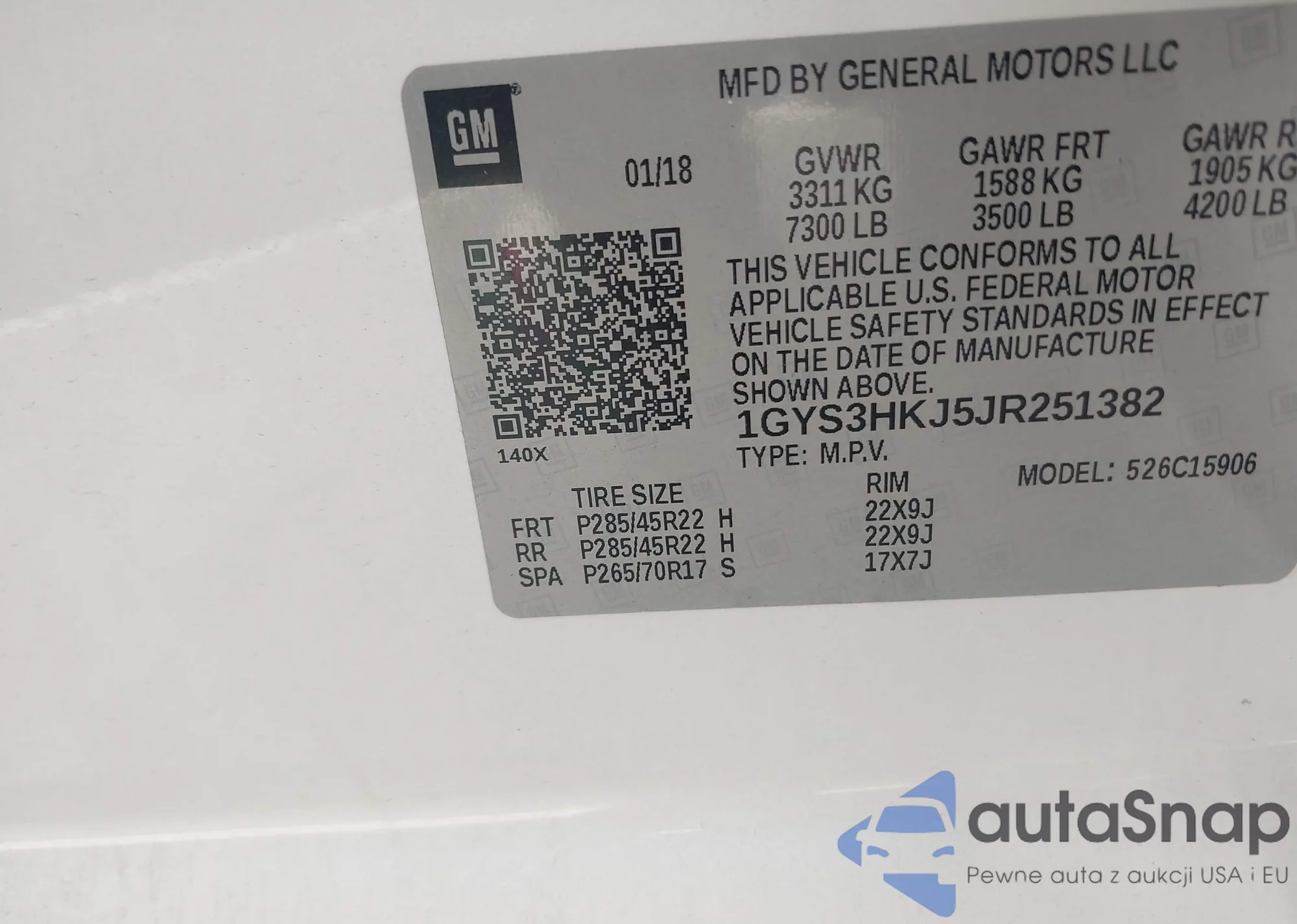 • VIN 1GYS3HKJ5JR251382