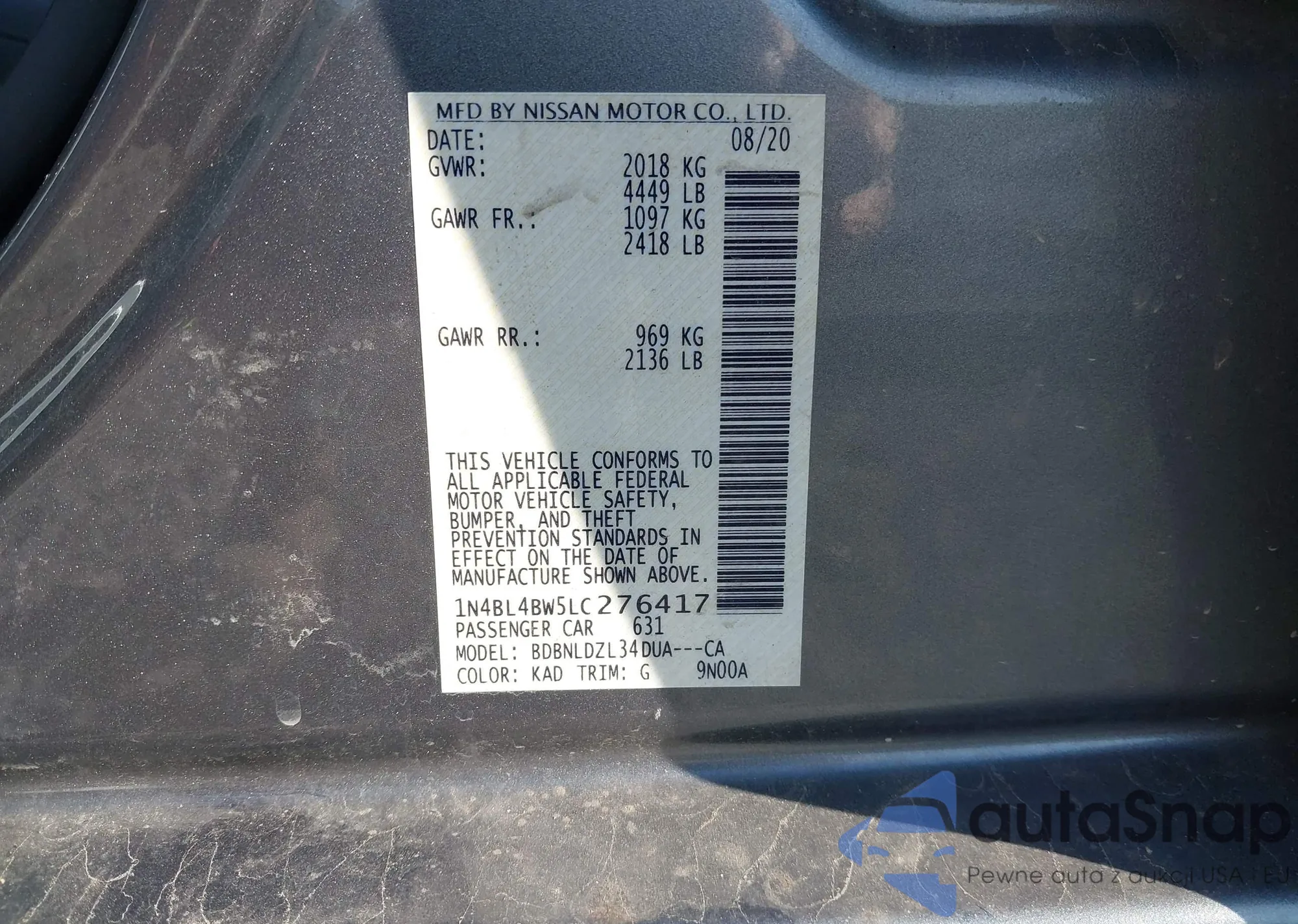 • VIN 1N4BL4BW5LC276417