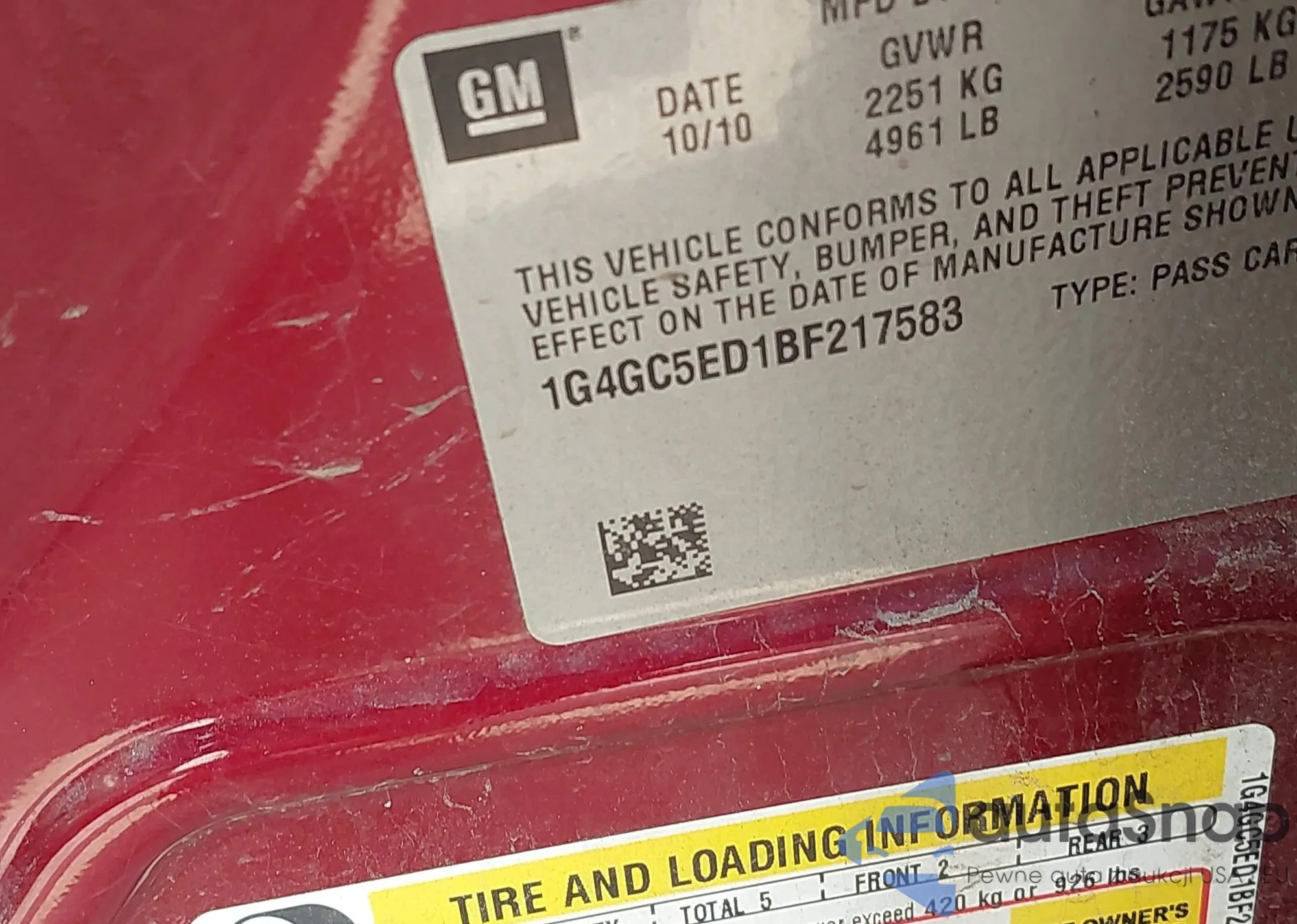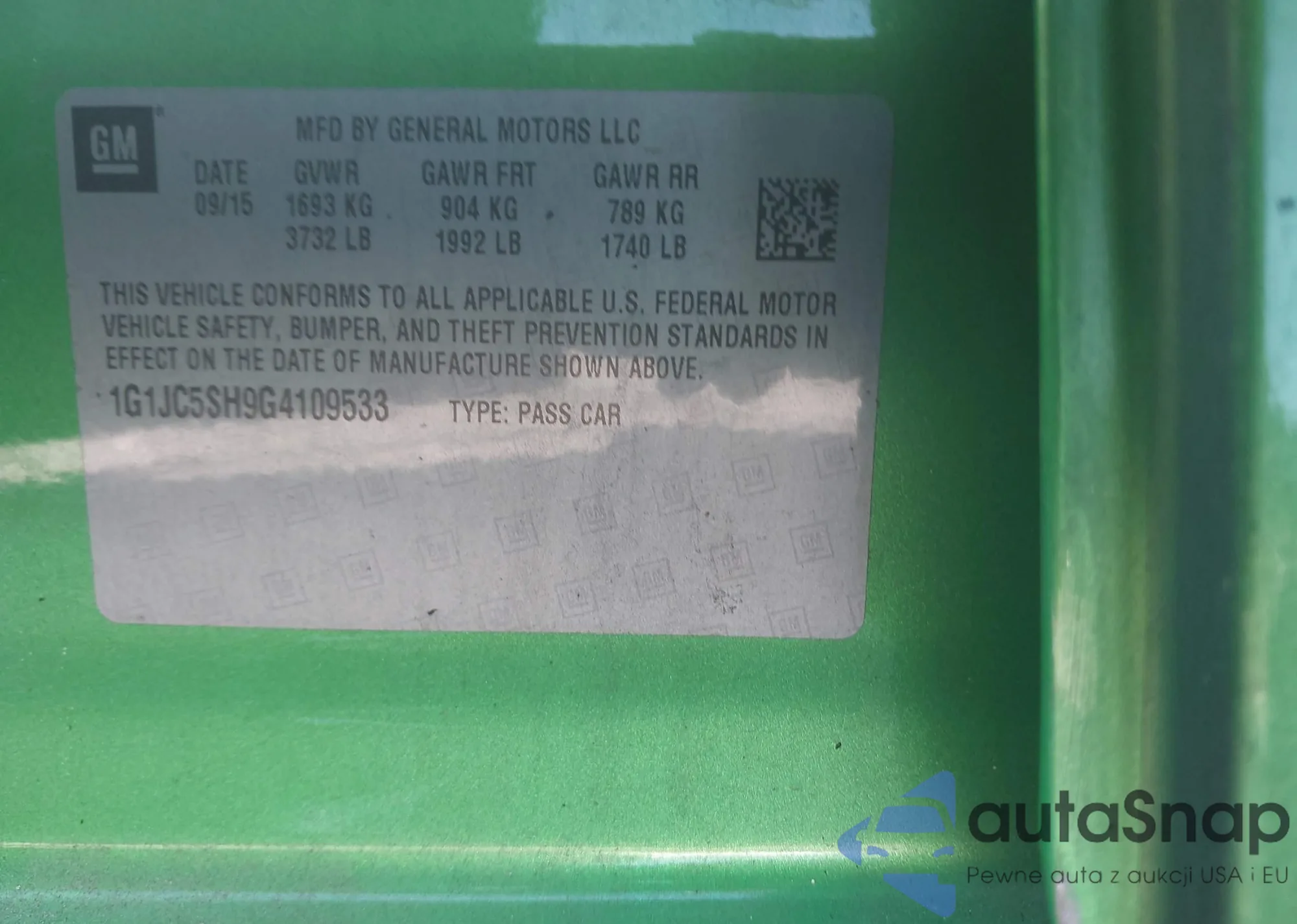 LOT: 42319538 VIN: 1G1JC5SH9G4109533