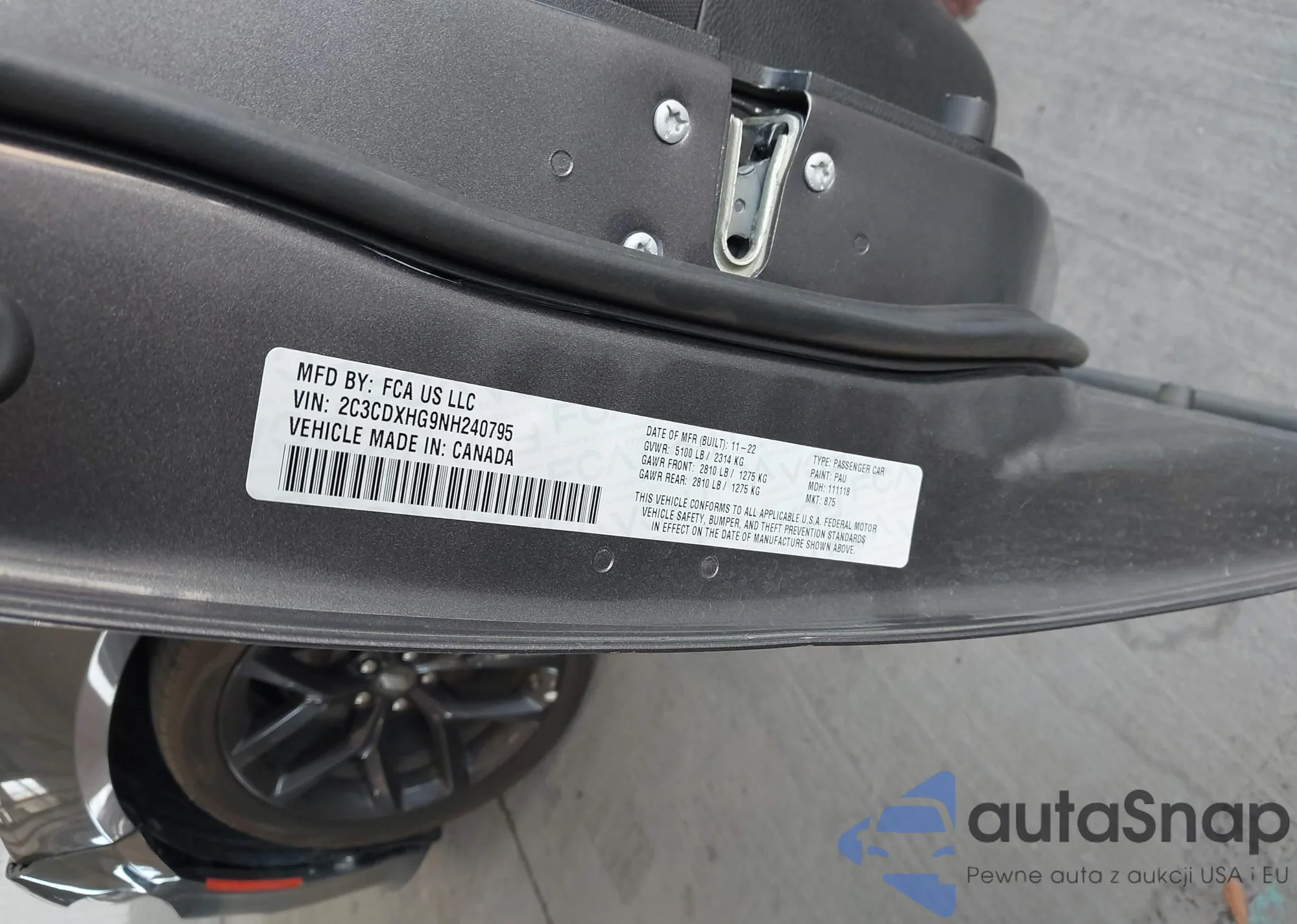 LOT: 42350757 VIN: 2C3CDXHG9NH240795