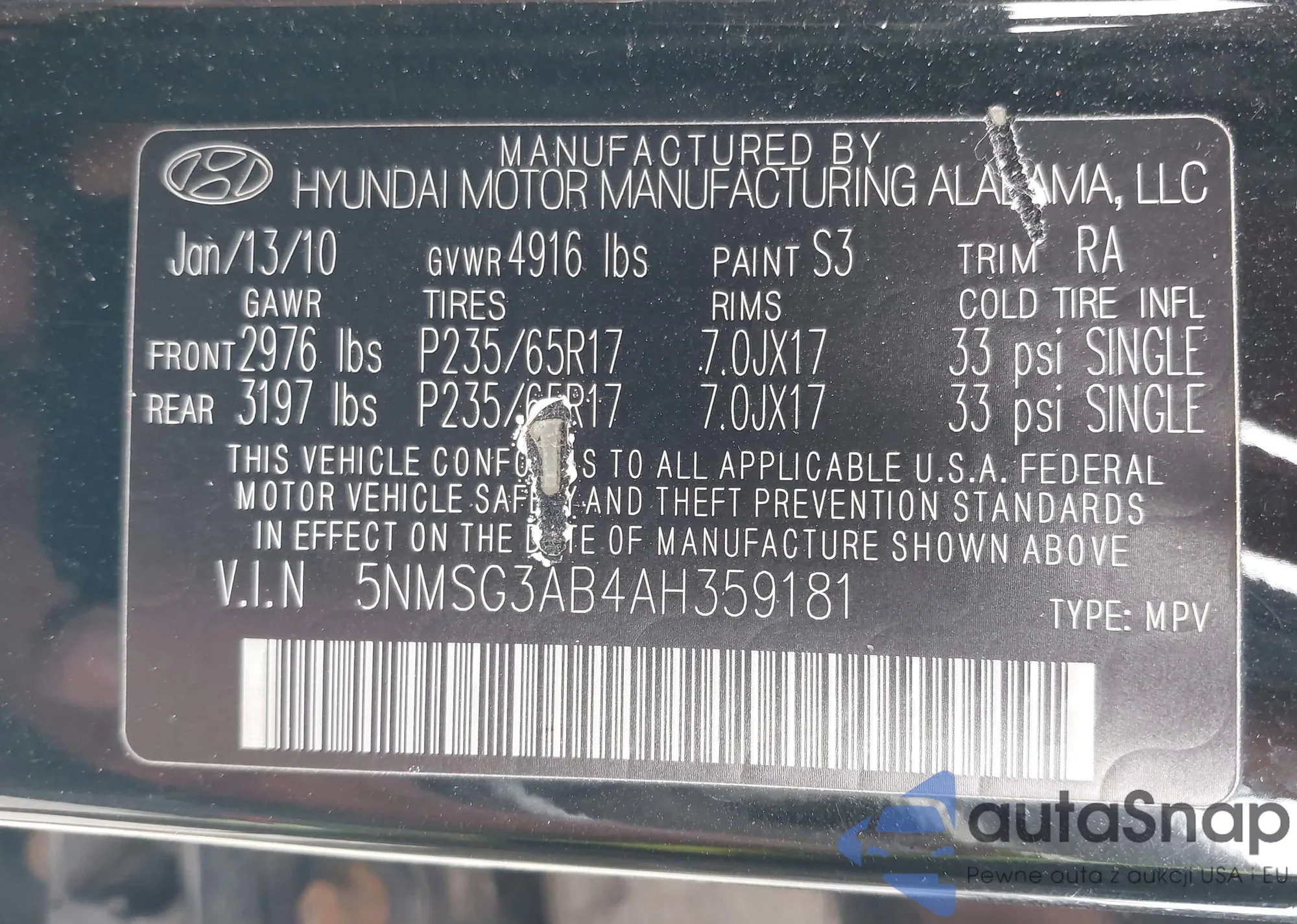 • VIN KL79MPS22MB113099