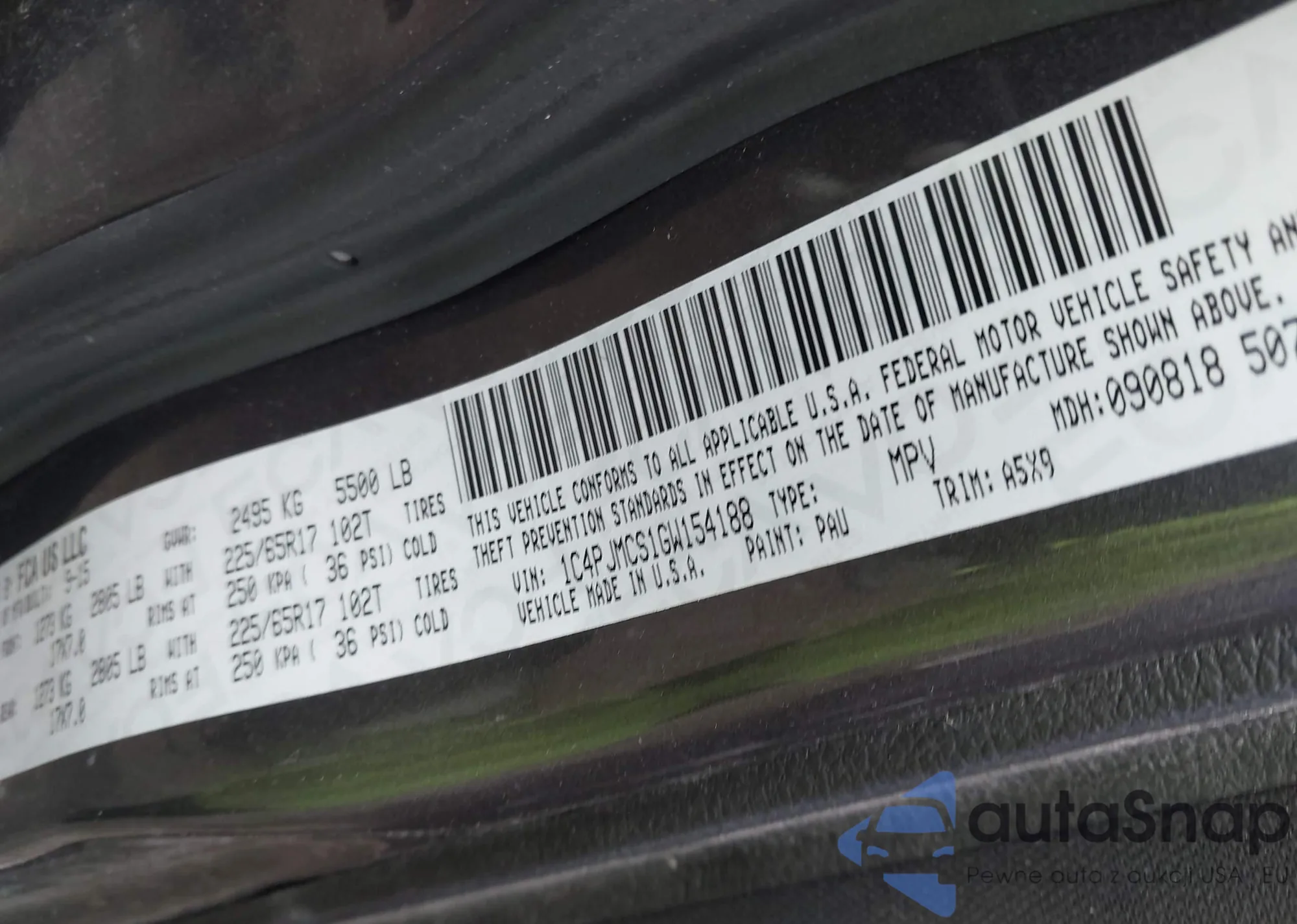 LOT: 42318317 VIN: 1C4PJMCS1GW154188
