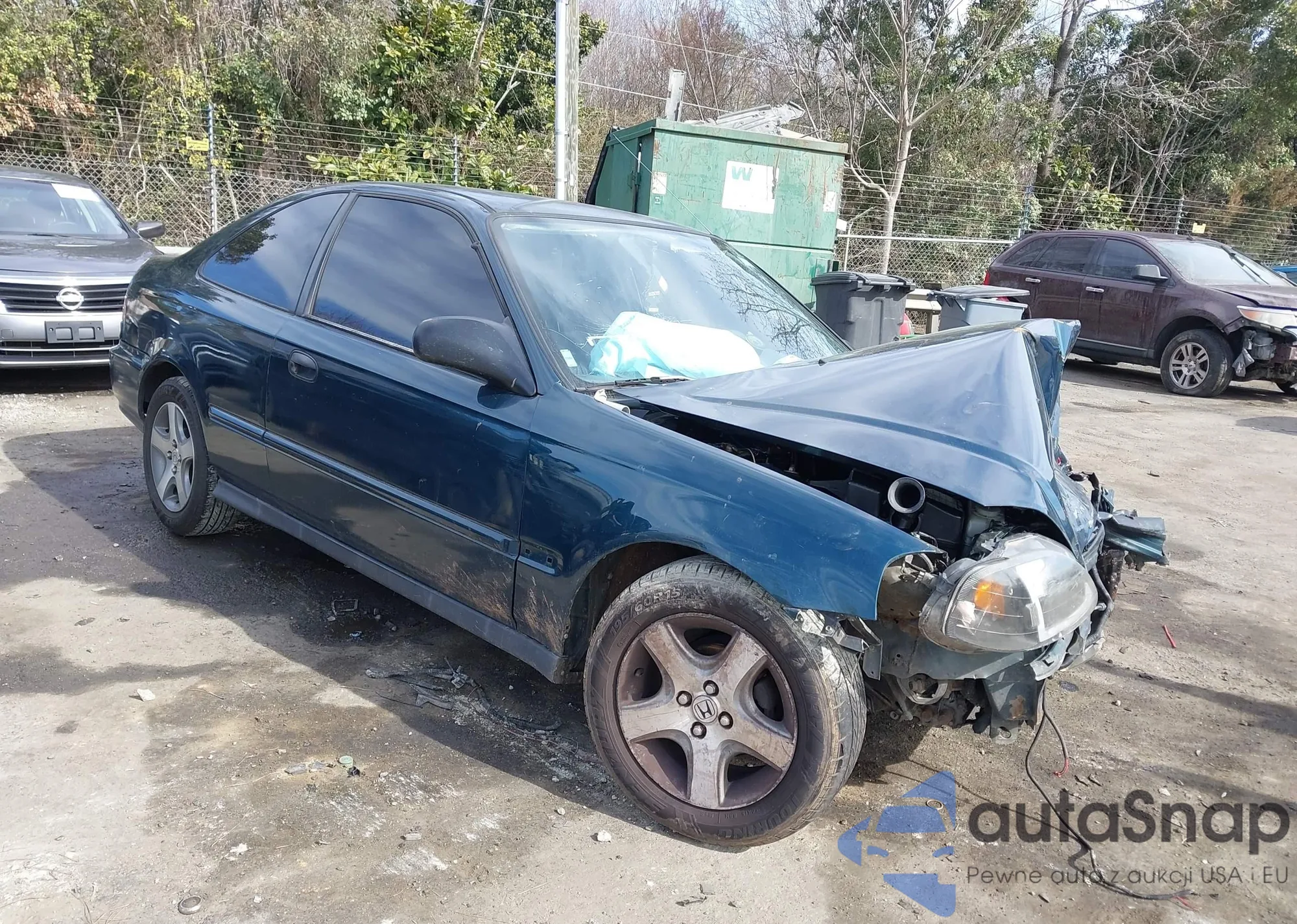 1998 Honda Civic Dx z USA, uszkodzony, nr VIN 1HGEJ6220WL049678