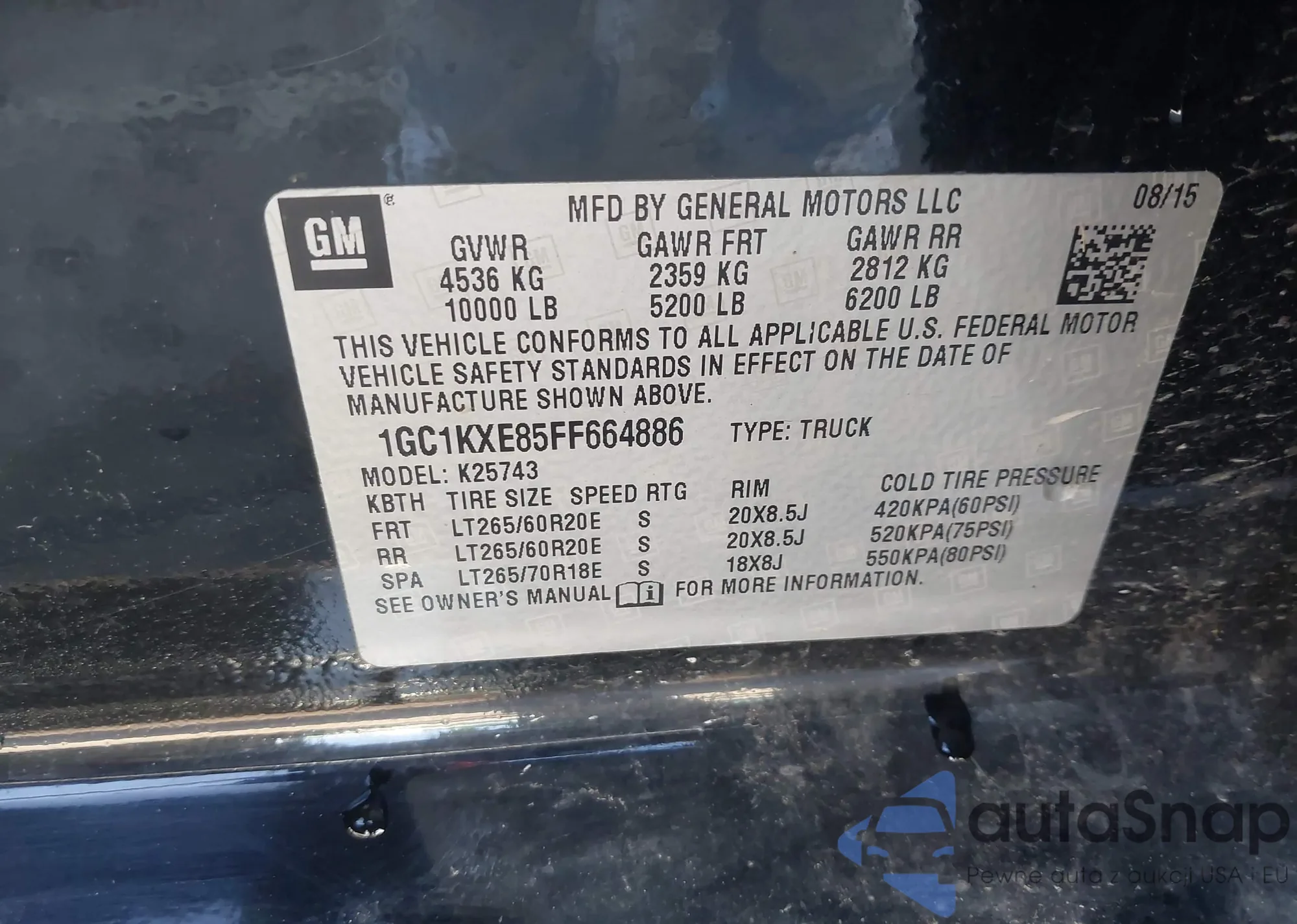 LOT: 41487218 VIN: 1GC1KXE85FF664886