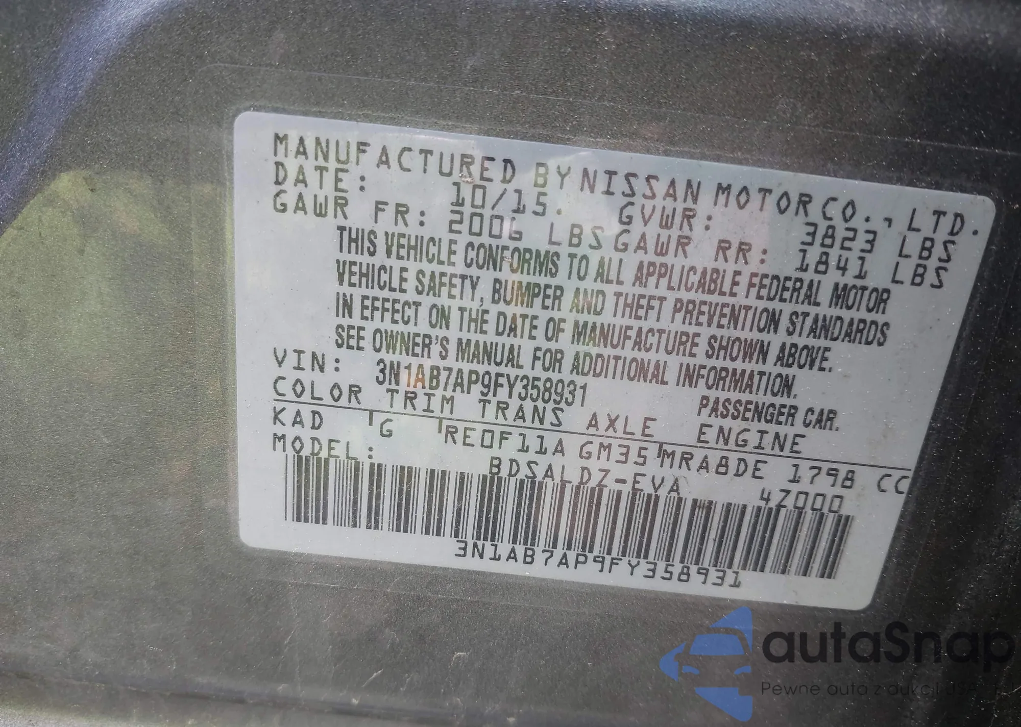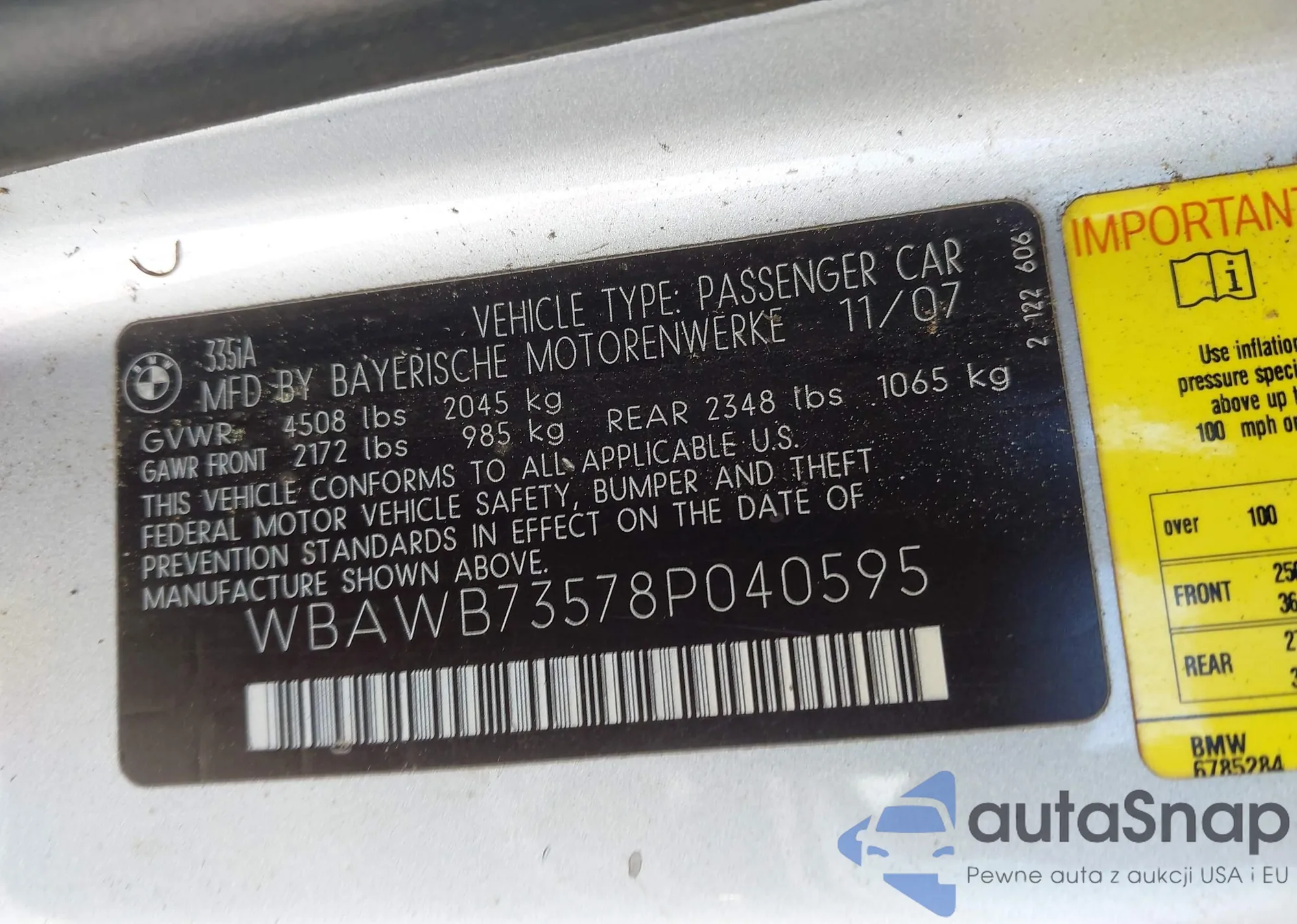 LOT: 41938076 VIN: WBAWB73578P040595