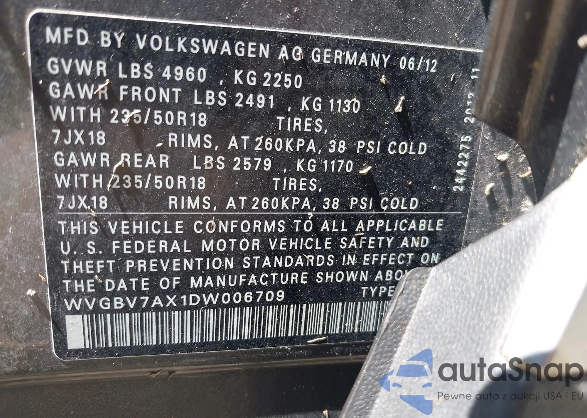 • VIN WVGBV7AX1DW006709