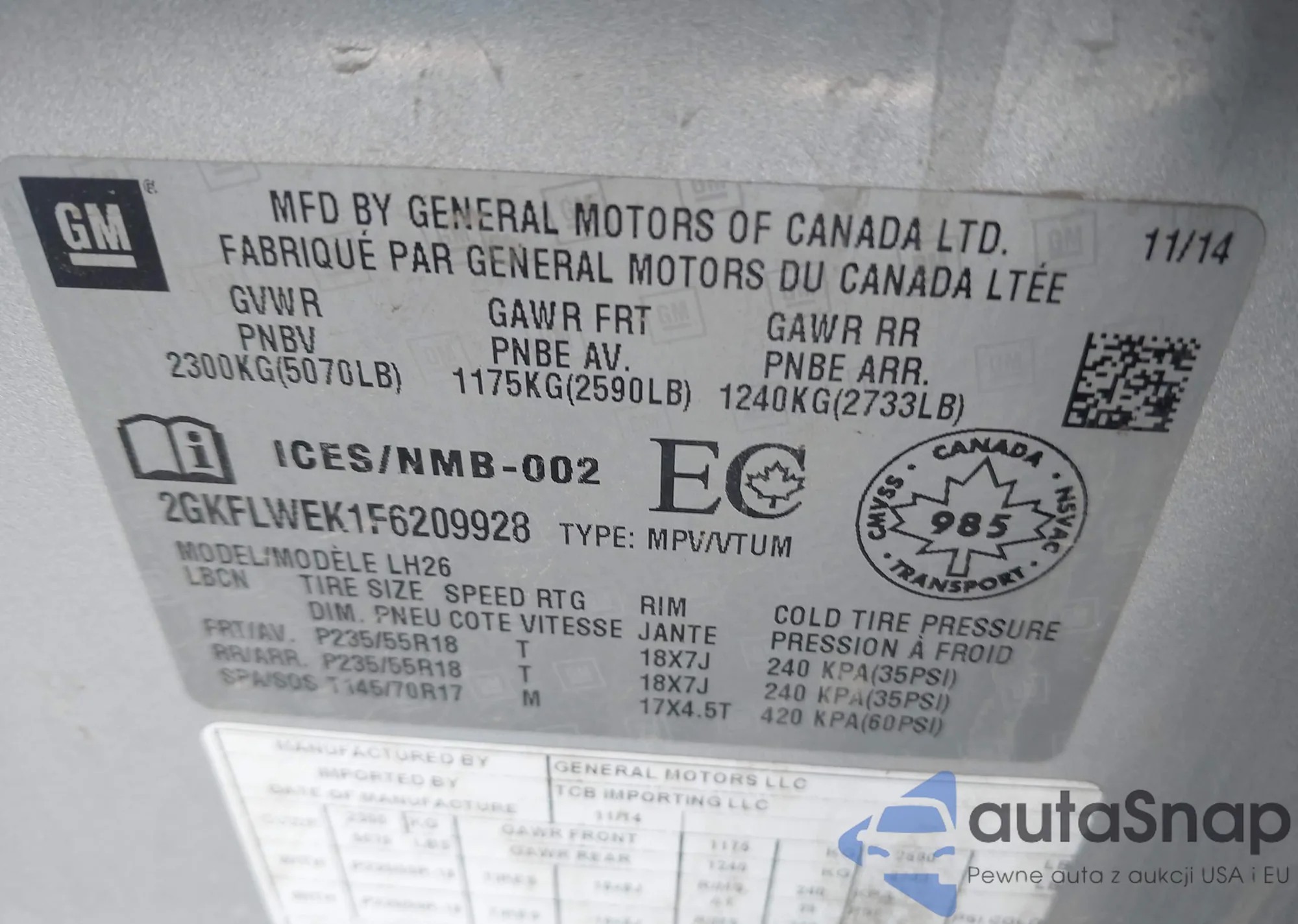 • VIN 2GKFLWEK1F6209928