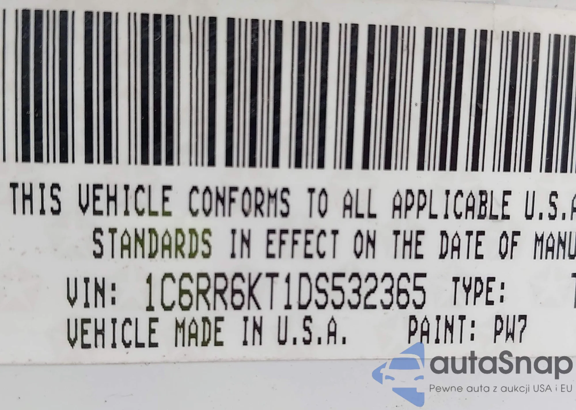• VIN 1C6RR6KT1DS532365
