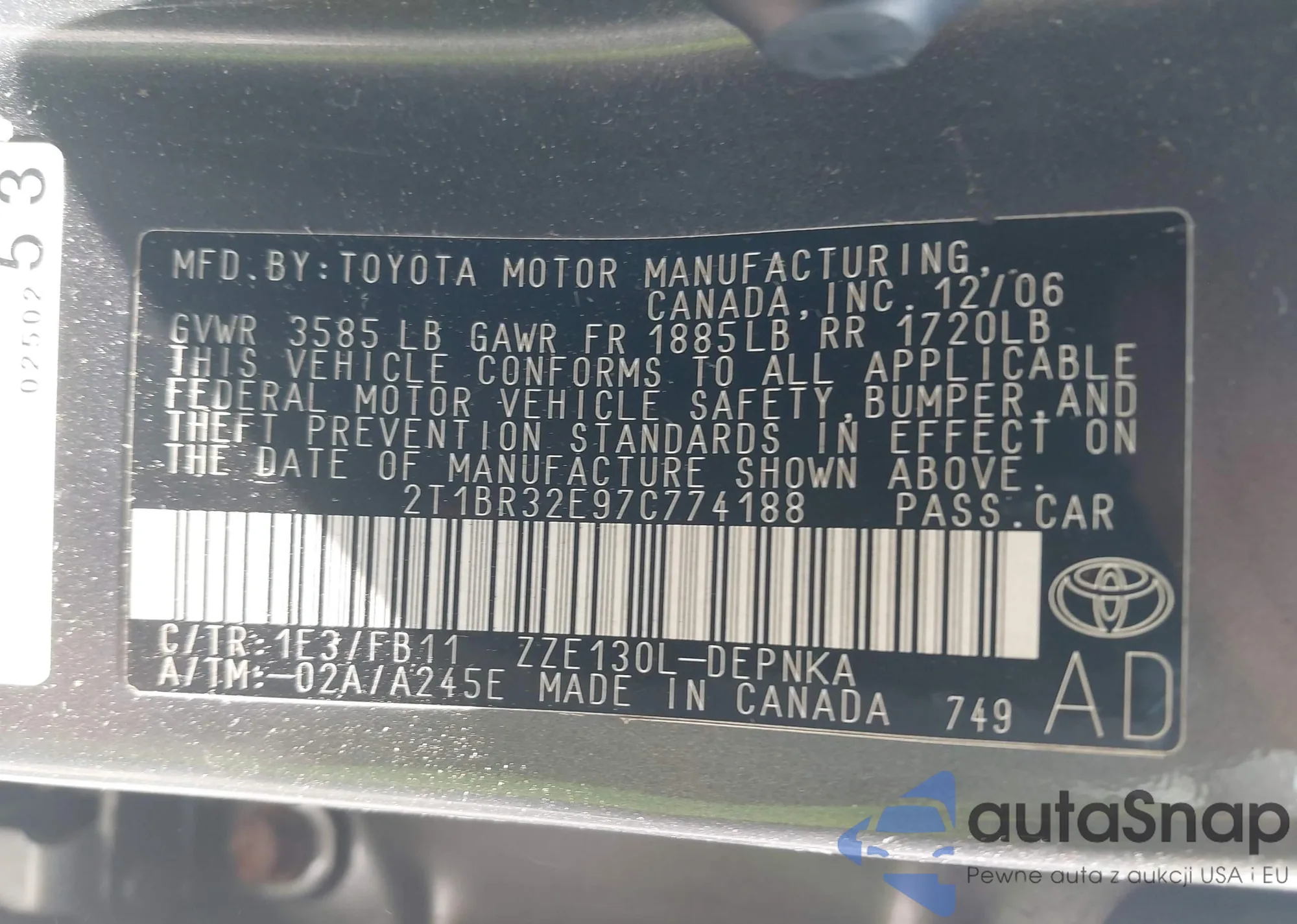 • VIN 2T1BR38E23C144532