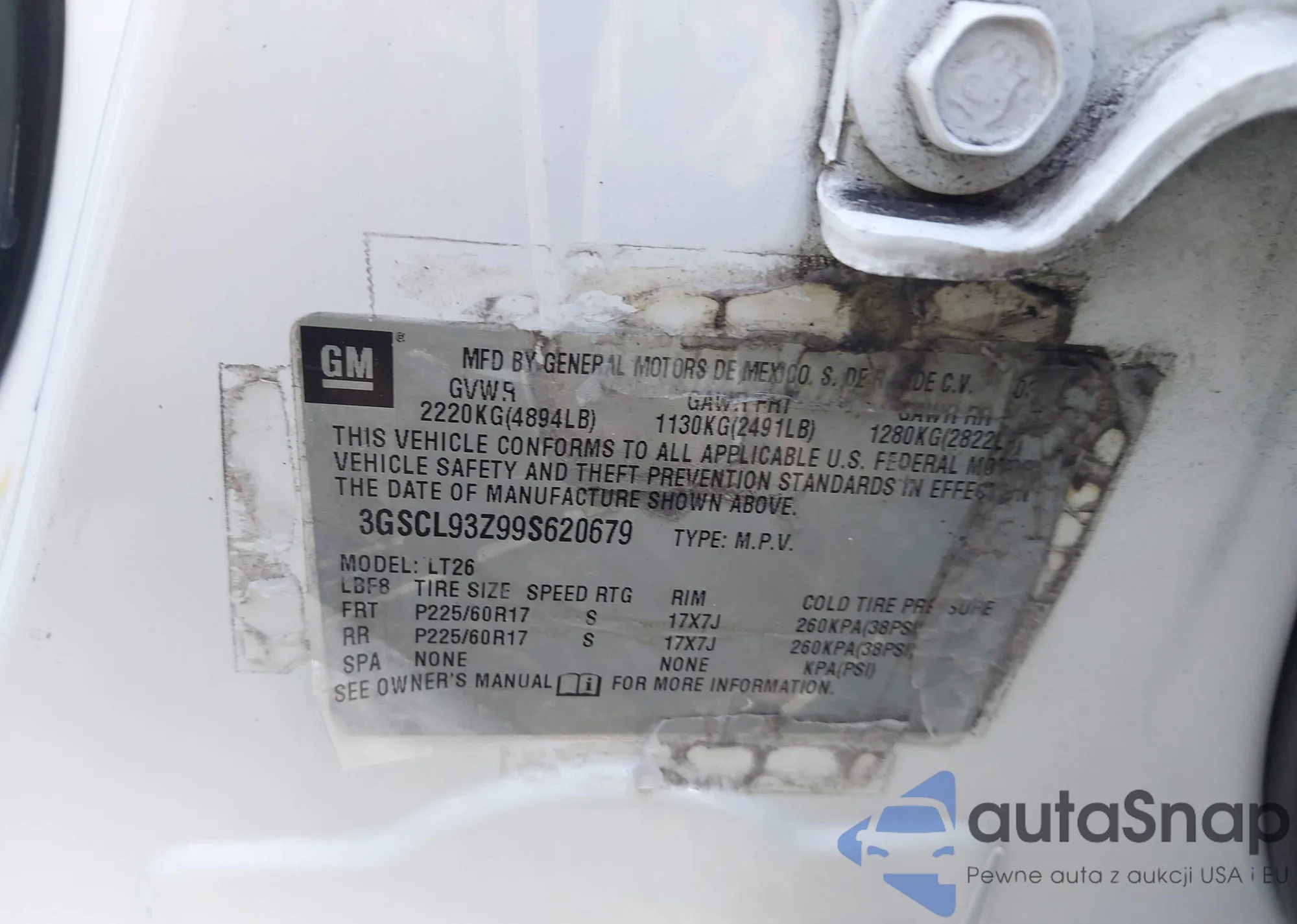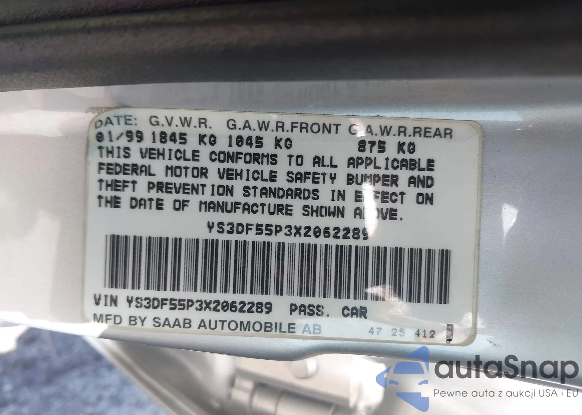 LOT: 42431225 VIN: YS3DF55P3X2062289