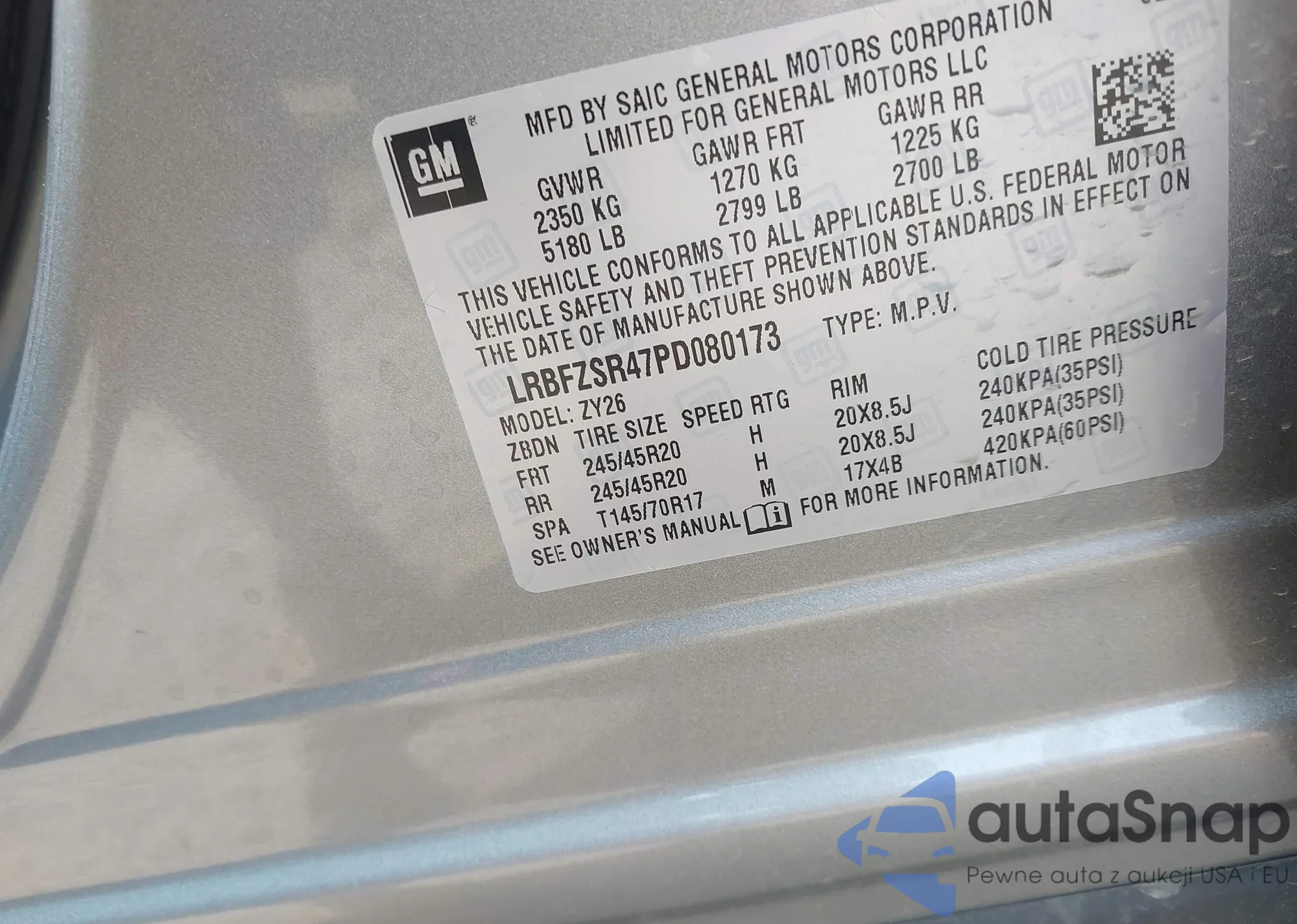 LOT: 42355430 VIN: LRBFZSR47PD080173