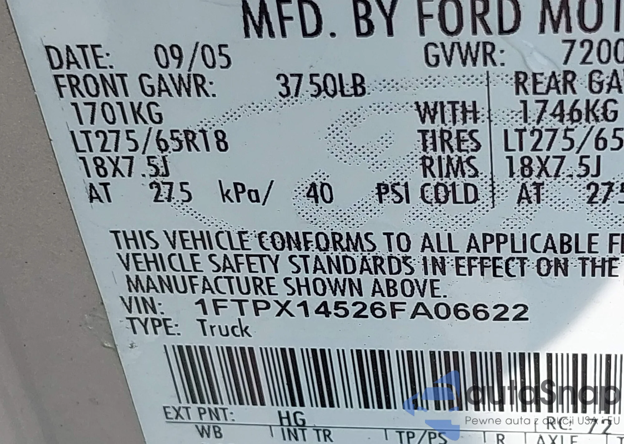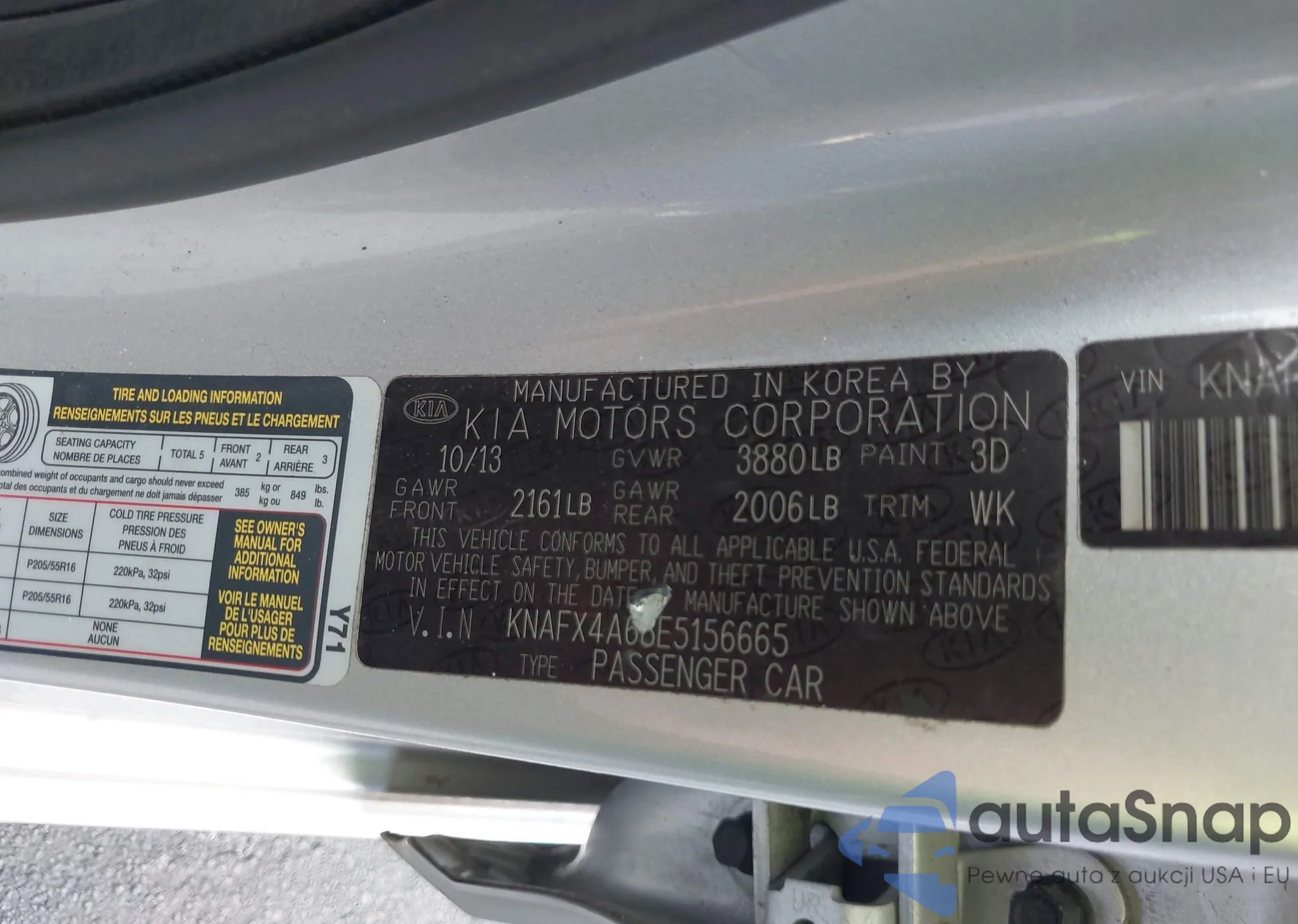 LOT: 42362724 VIN: KNAFX4A68E5156665
