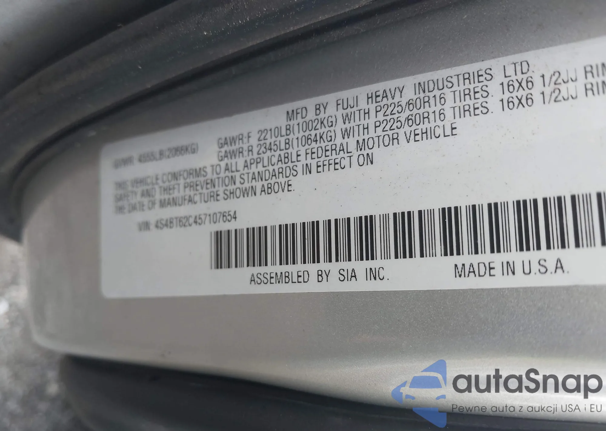 • VIN 4S4BT62C457107654