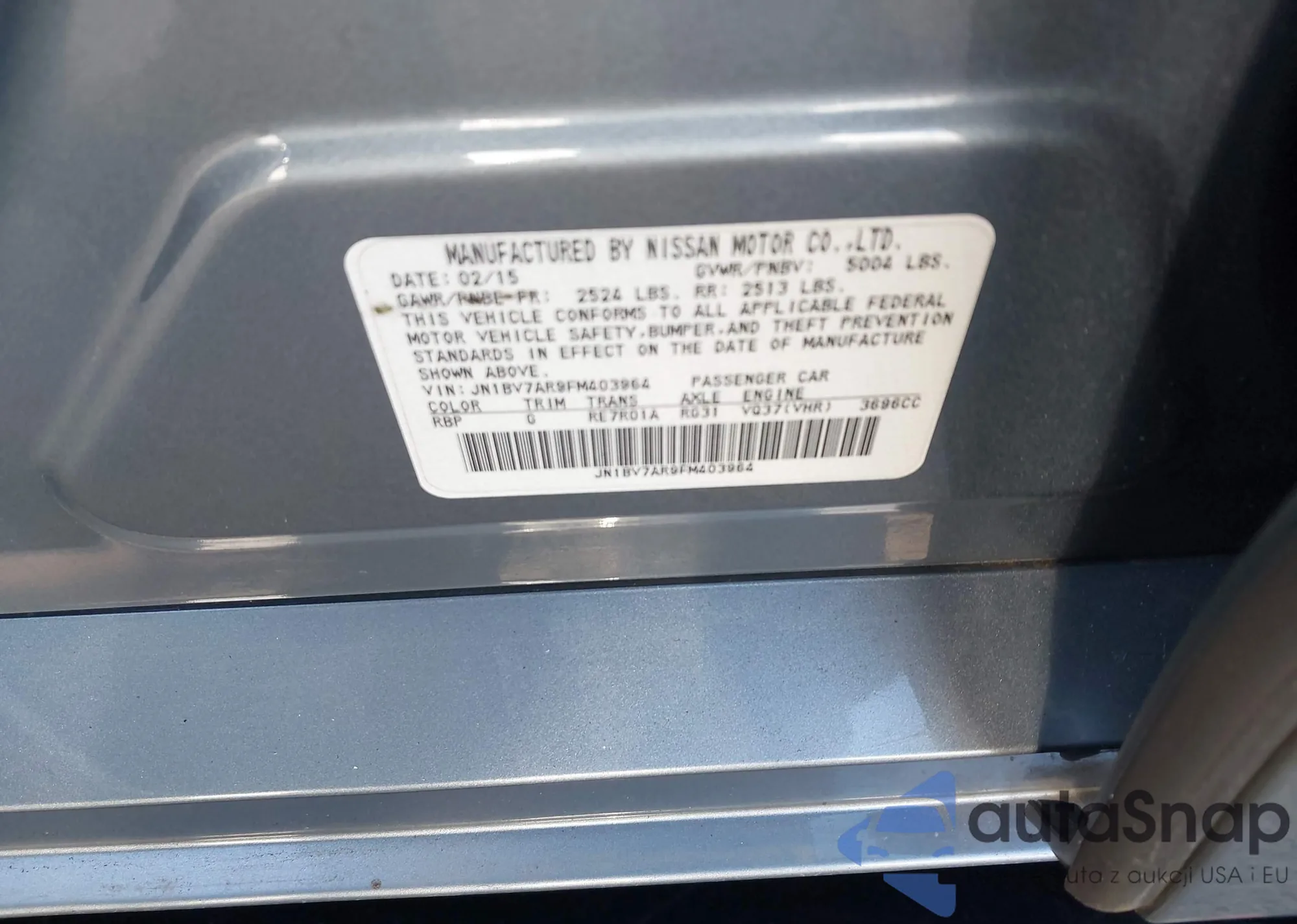 LOT: 41457955 VIN: JN1BV7AR9FM403964