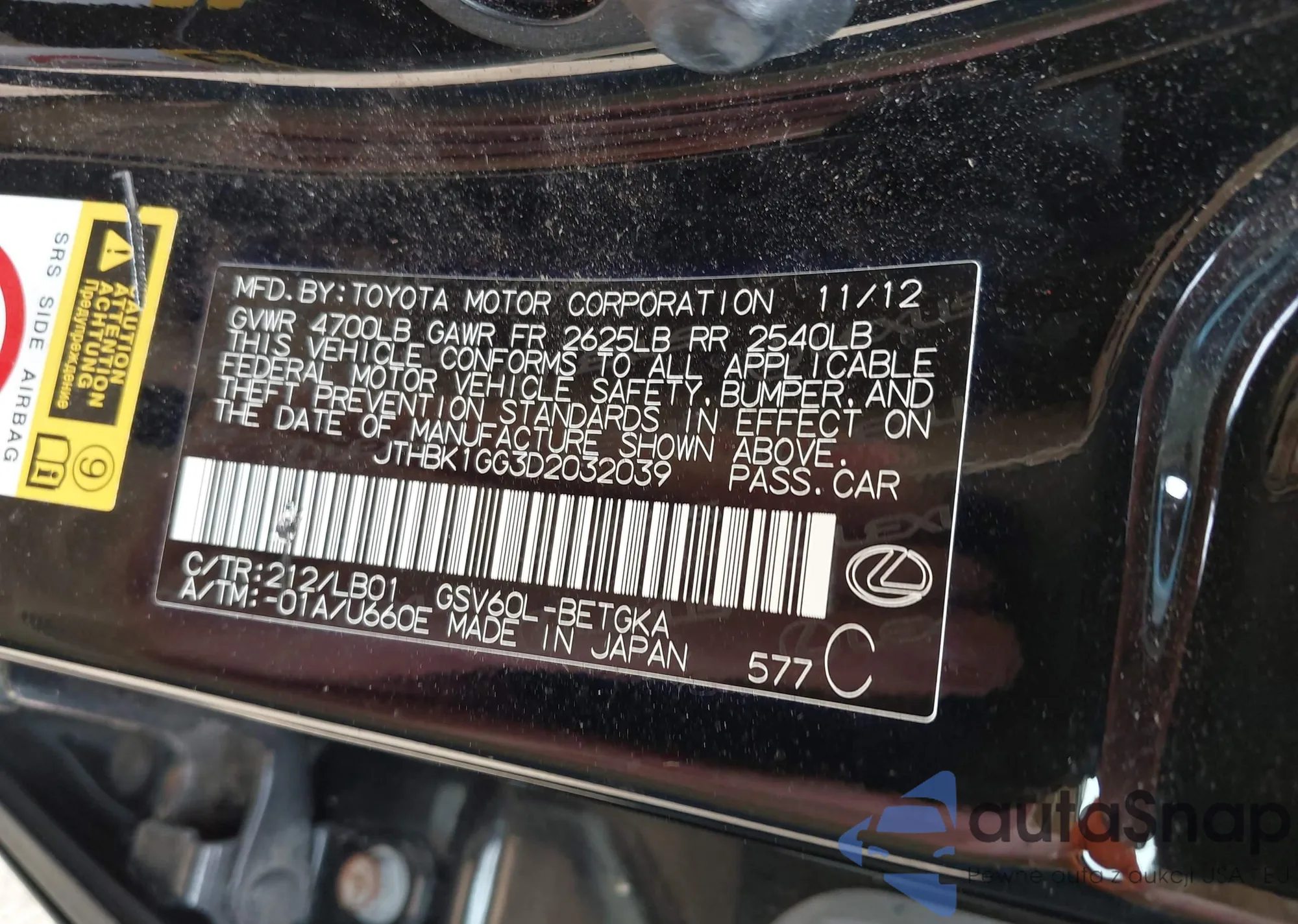 LOT: 42434692 VIN: JTHBK1GG3D2032039