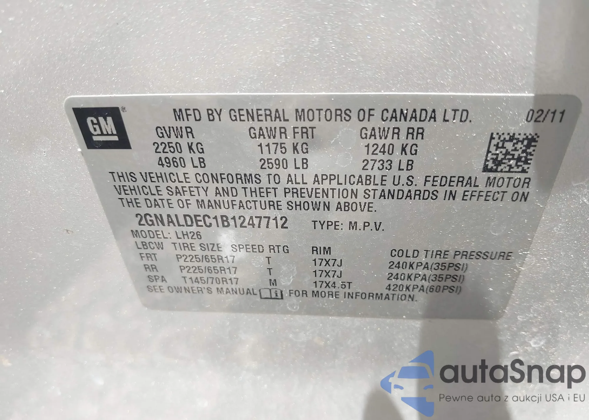 LOT: 42496124 VIN: WAUEAAF48PN020896