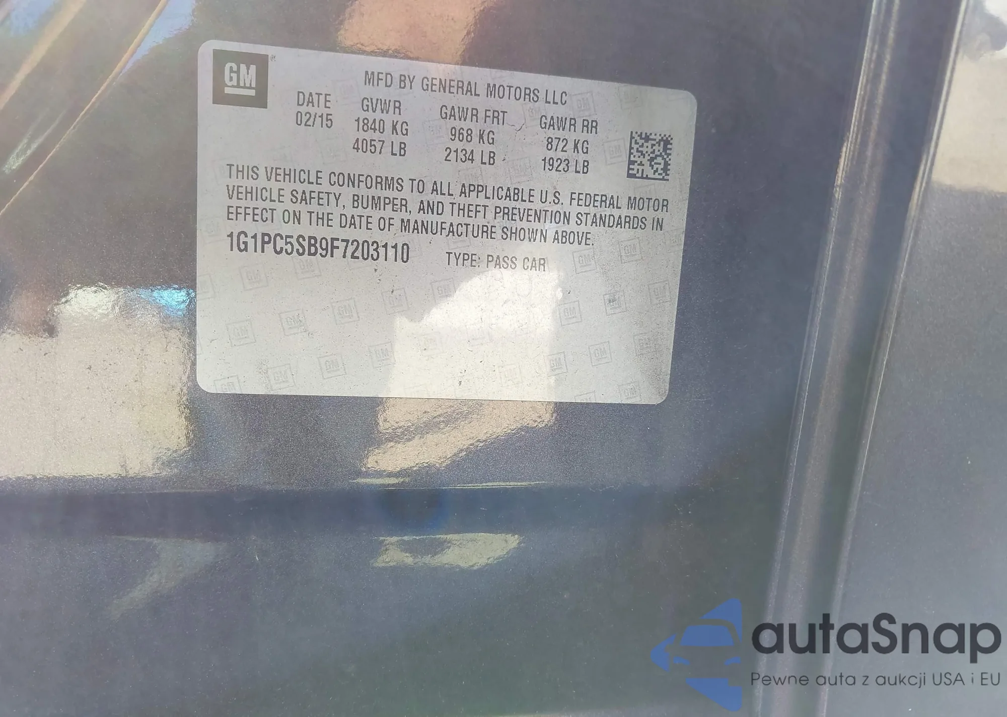 LOT: 40570188 VIN: 1G1PC5SB9F7203110
