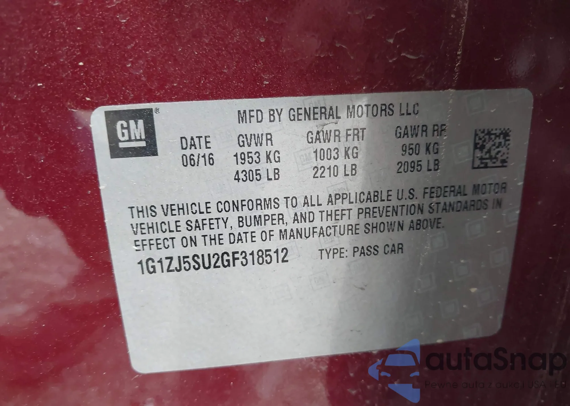 • VIN 1G1ZJ5SU2GF318512