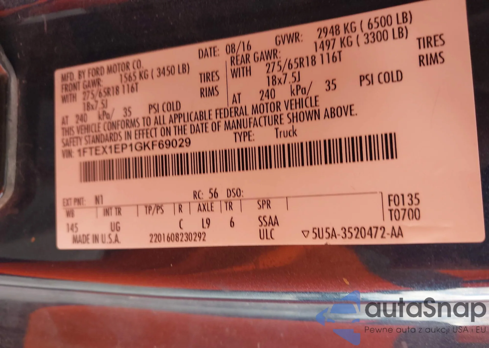 LOT: 42167384 VIN: 1FTEX1EP1GKF69029