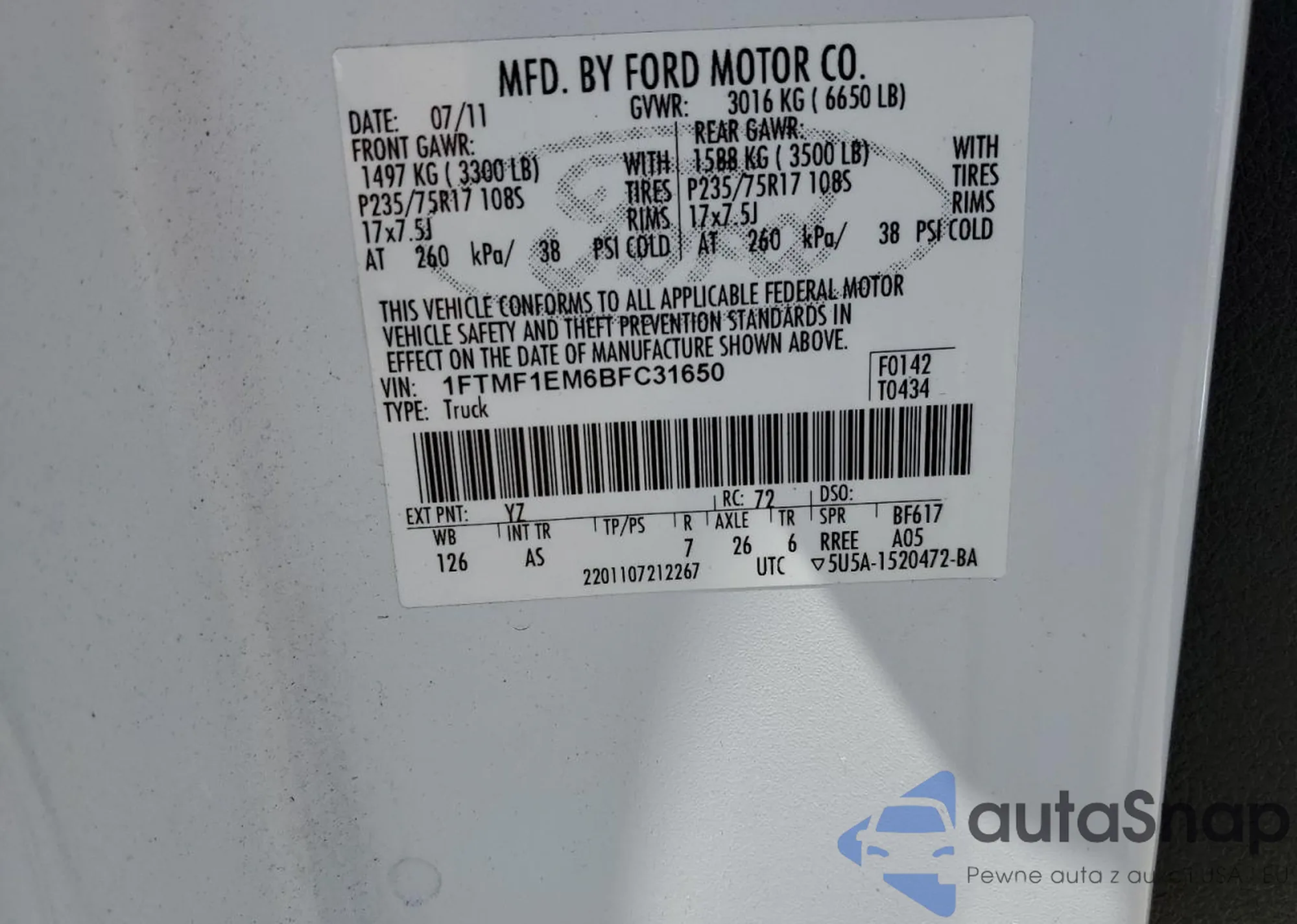 LOT: 59943865 VIN: 1FTMF1EM6BFC31650