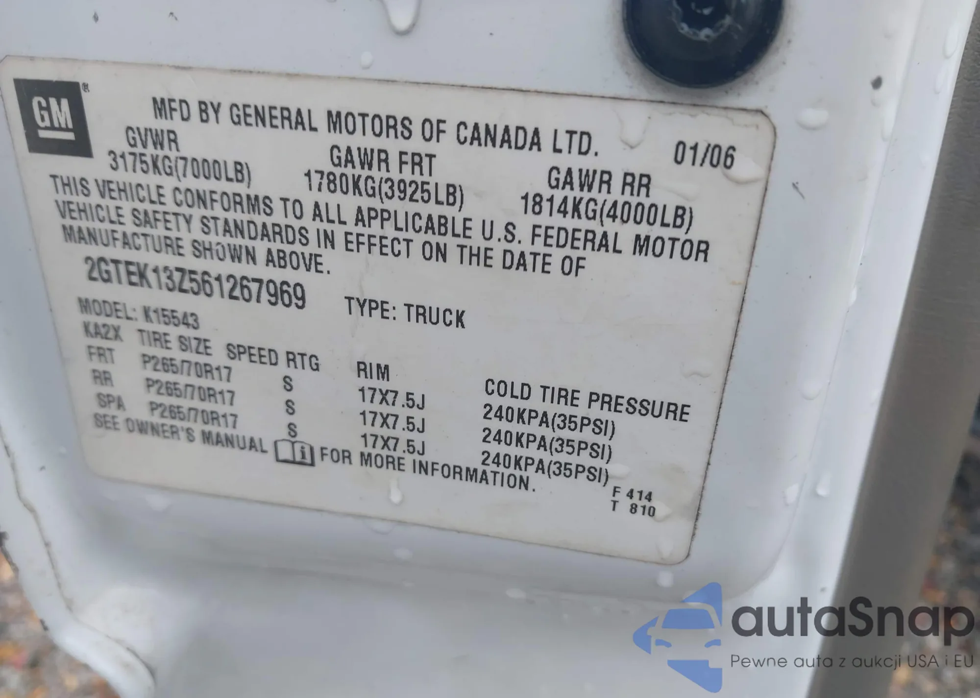 • VIN 2GTEK13Z561267969