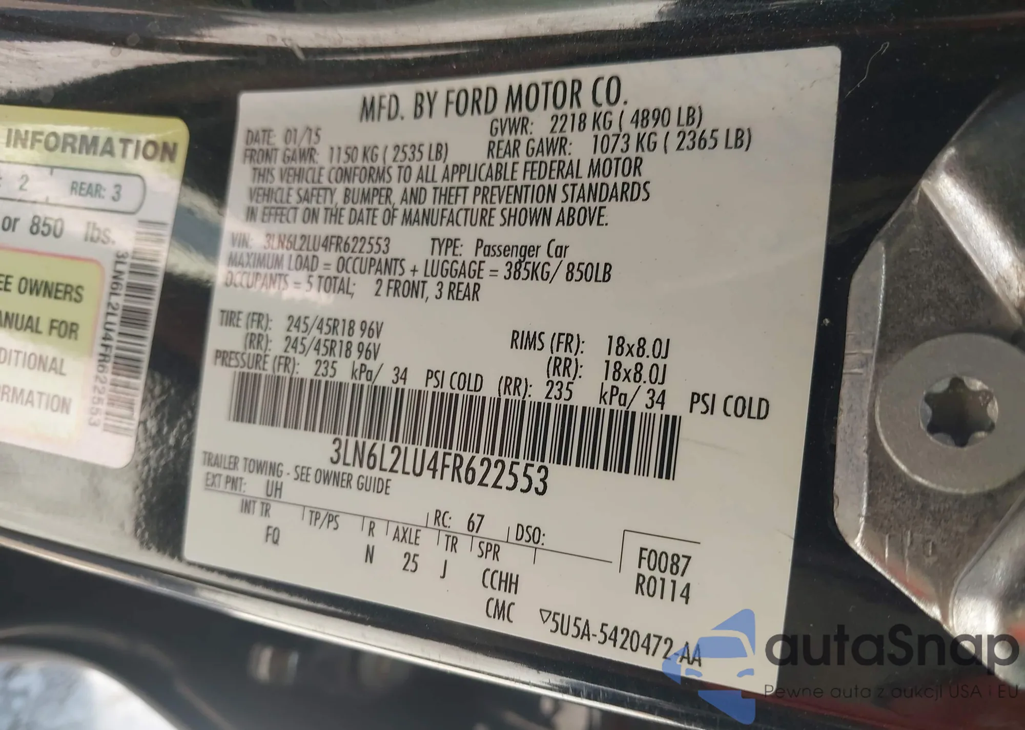 LOT: 42557326 VIN: 3FA6P0H93FR223365