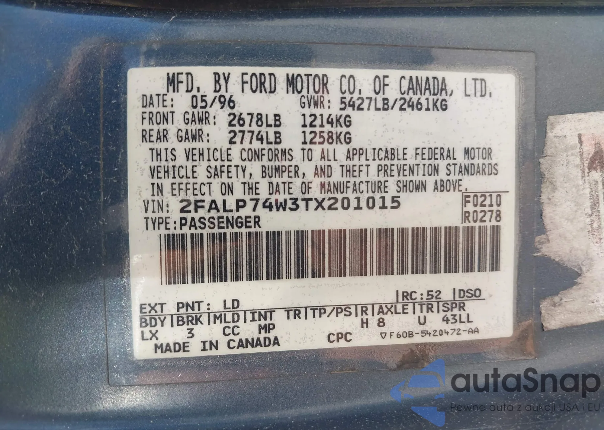 • VIN 2FALP74W3TX201015