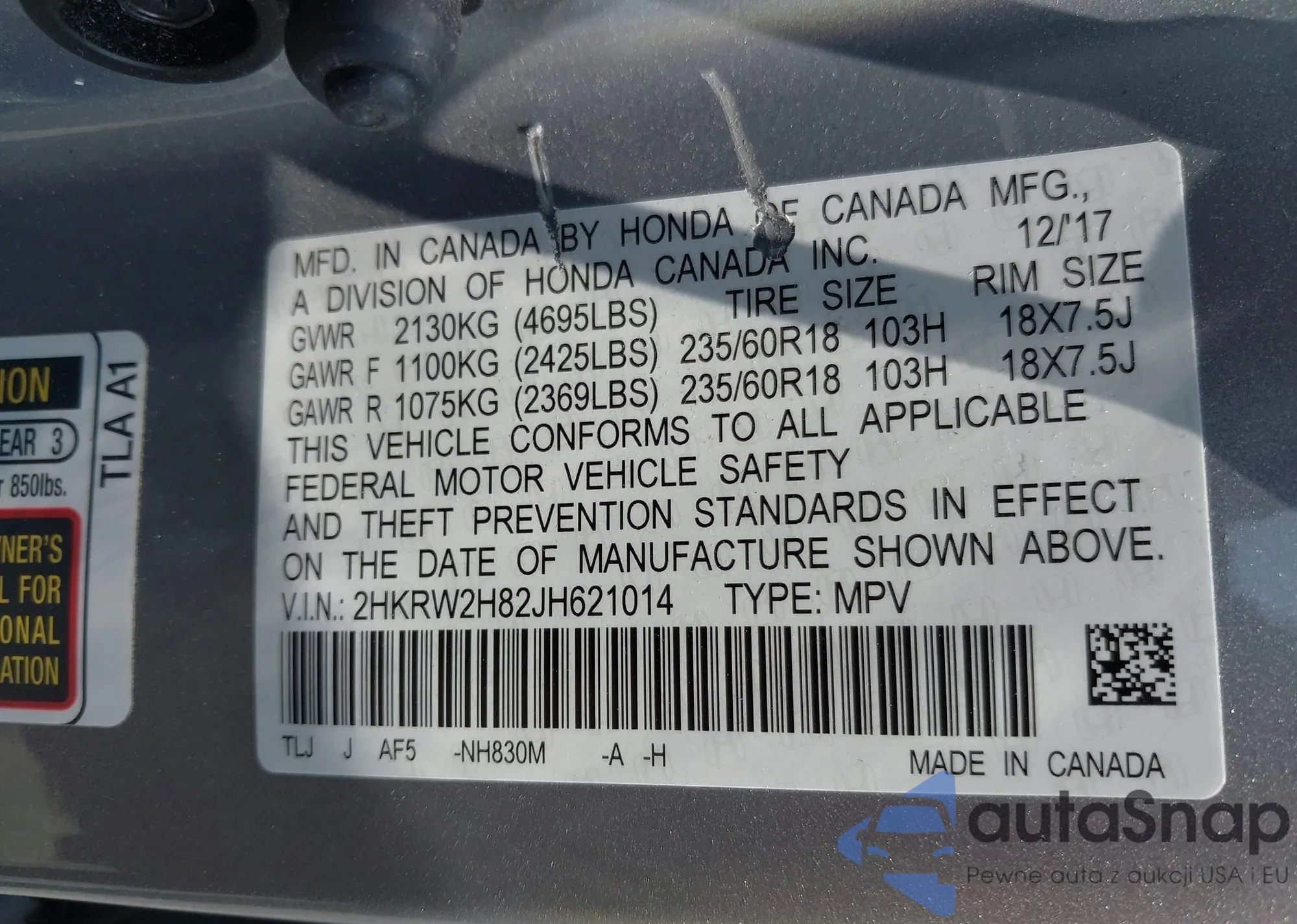 • VIN 5J6RW2H20LL026022