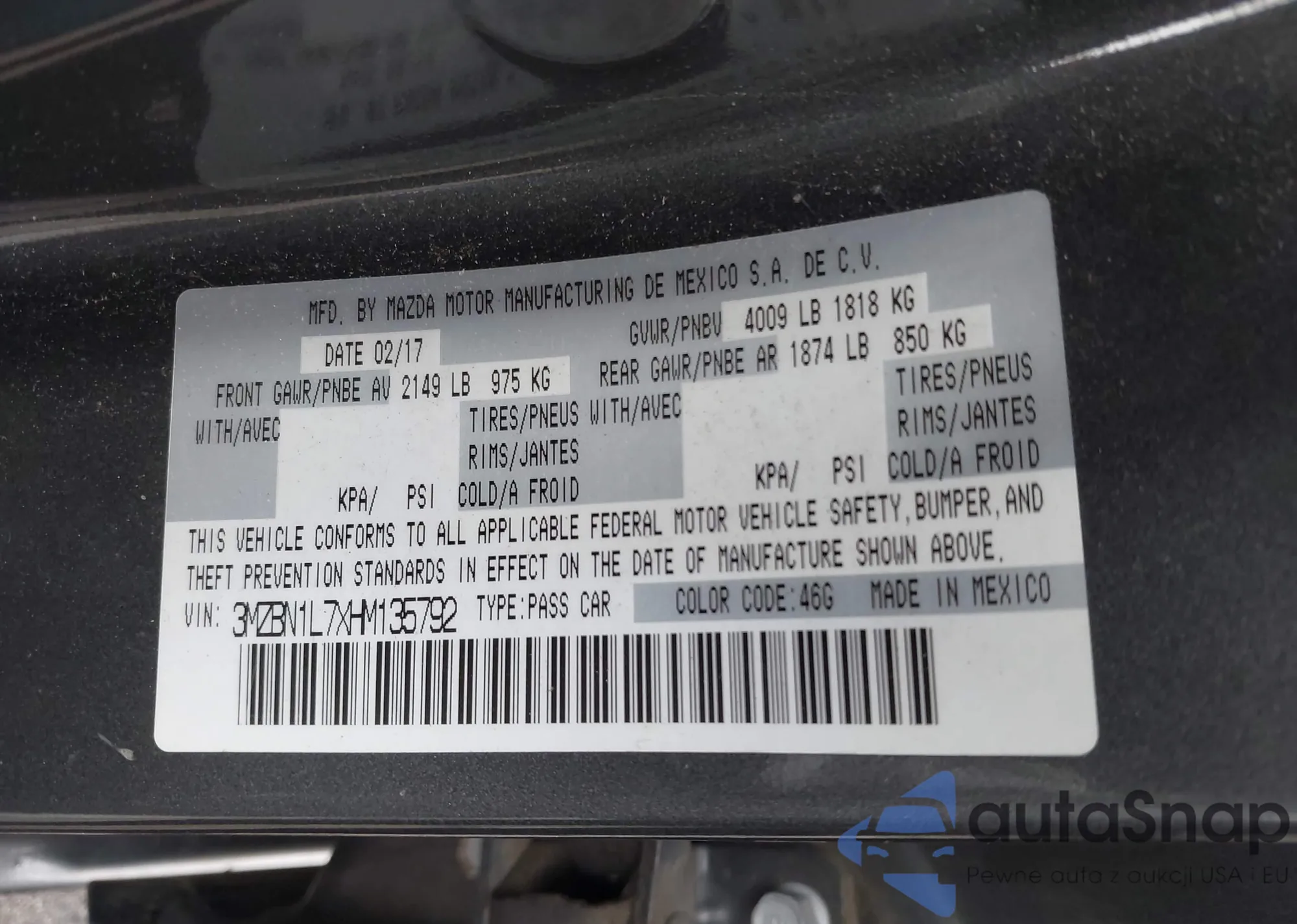 • VIN 3MZBN1L7XHM135792