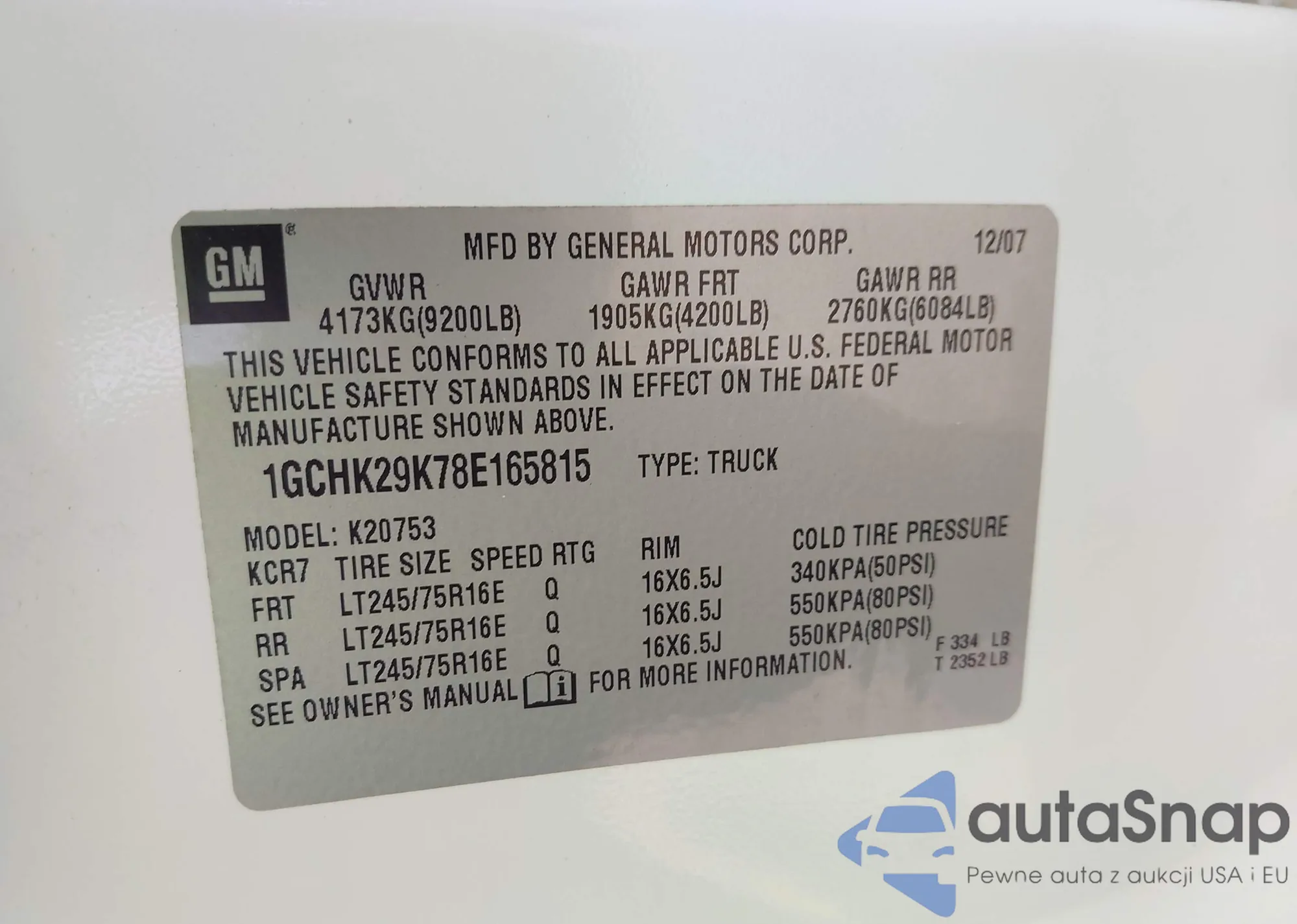 LOT: 42558979 VIN: 1GCHK29K78E165815