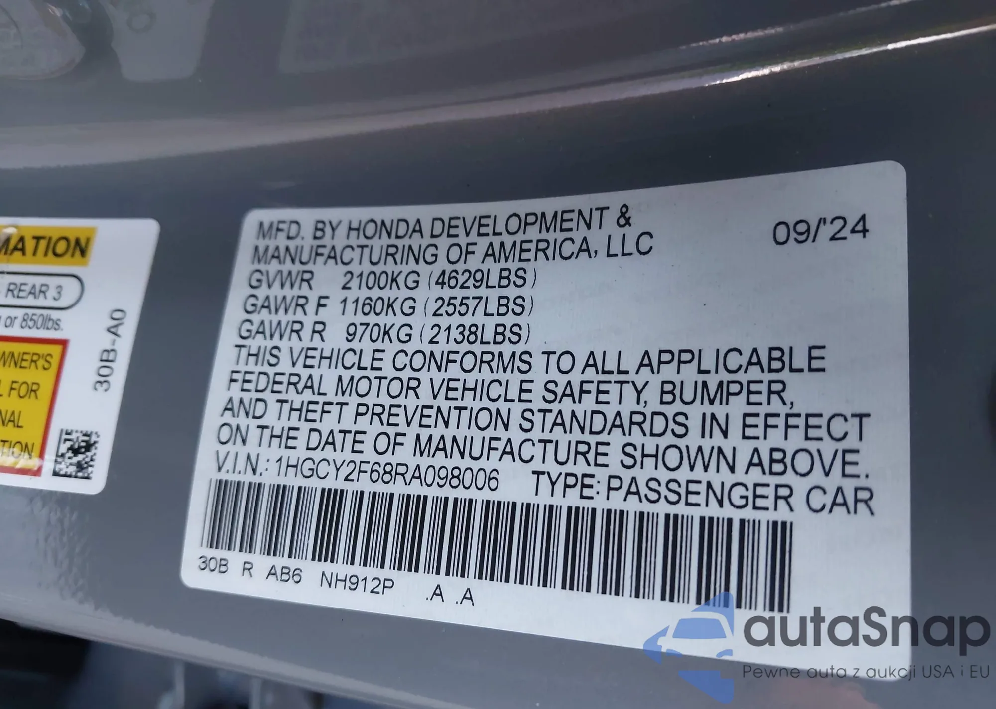 • VIN 1HGCY2F68RA098006