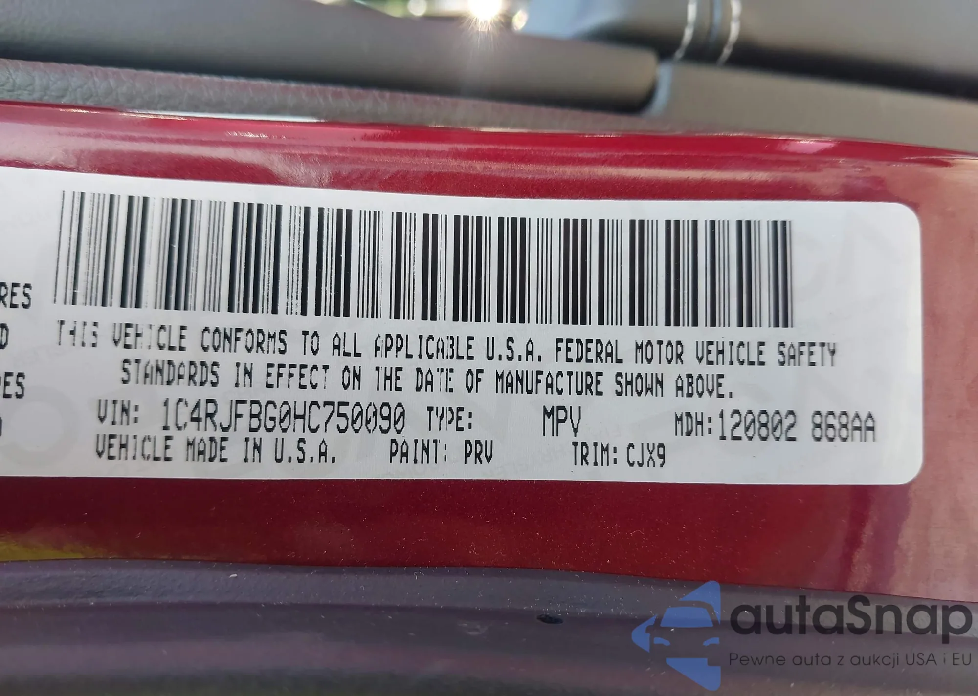 • VIN 1C4RJFBG0HC750090
