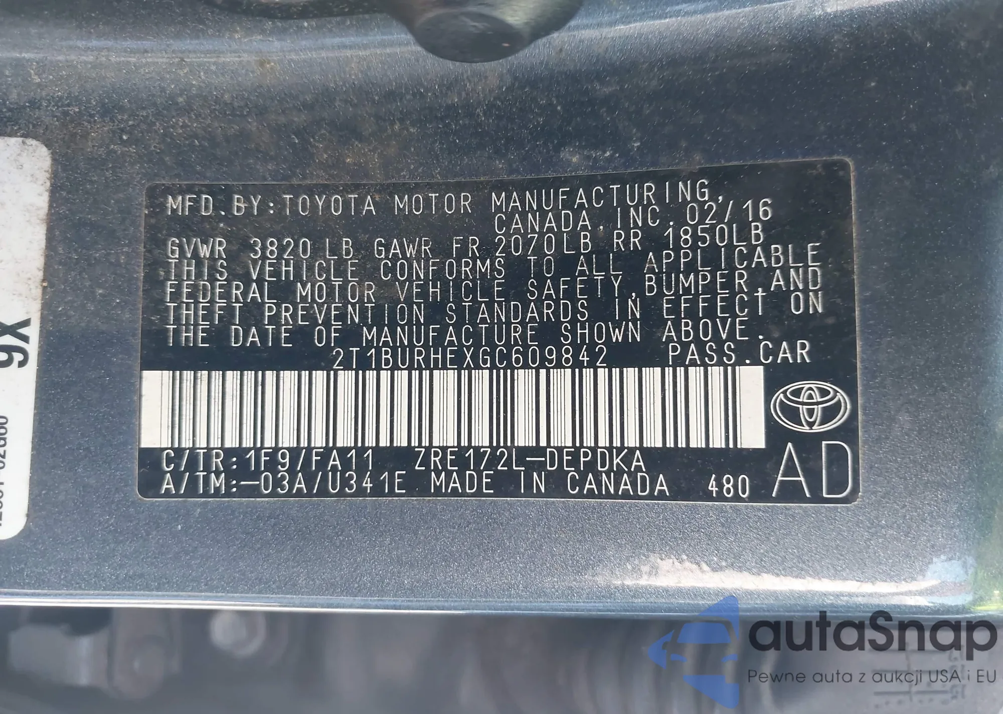 LOT: 41955938 VIN: 2T1BURHEXGC609842