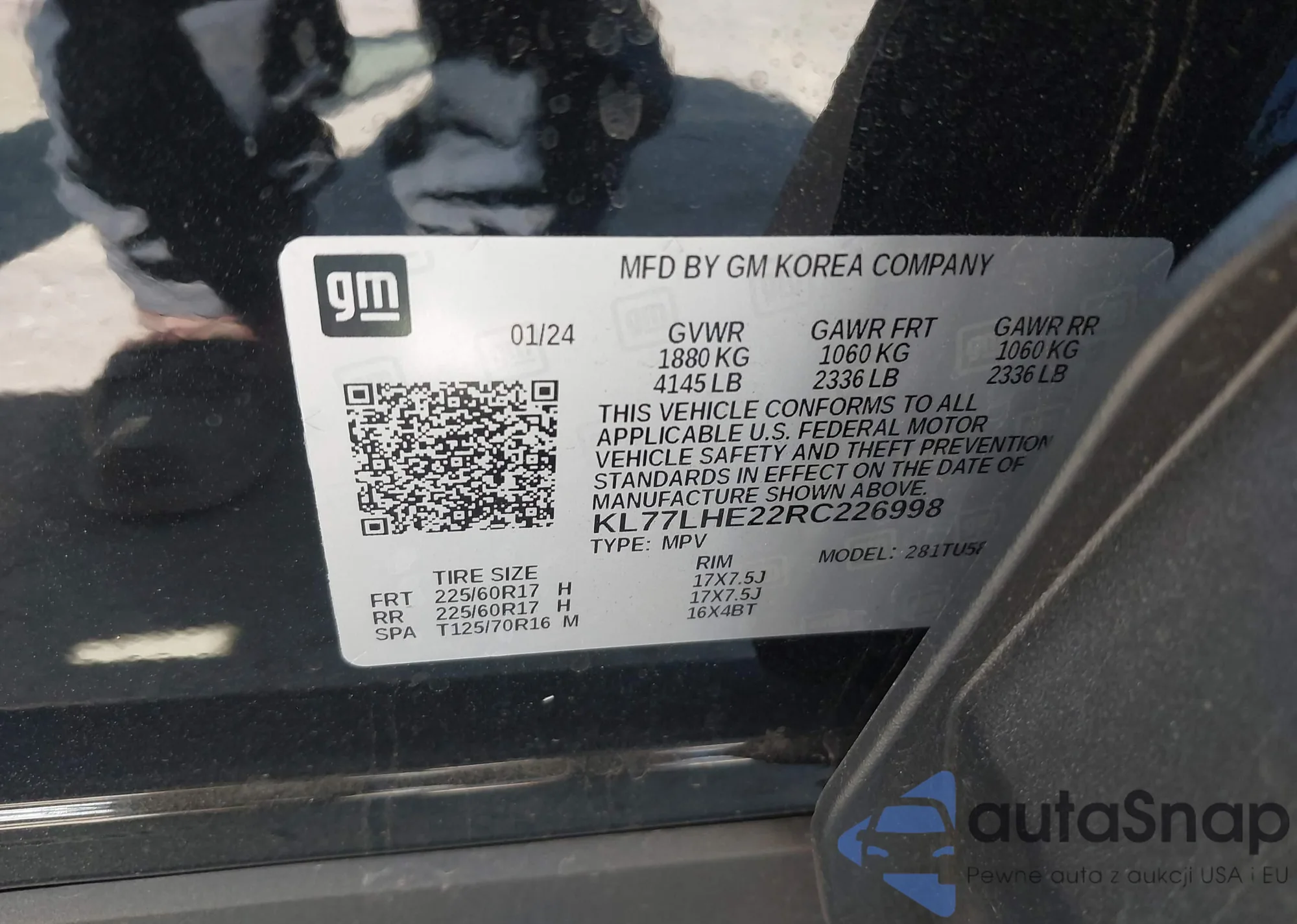 • VIN KL77LHE22RC226998