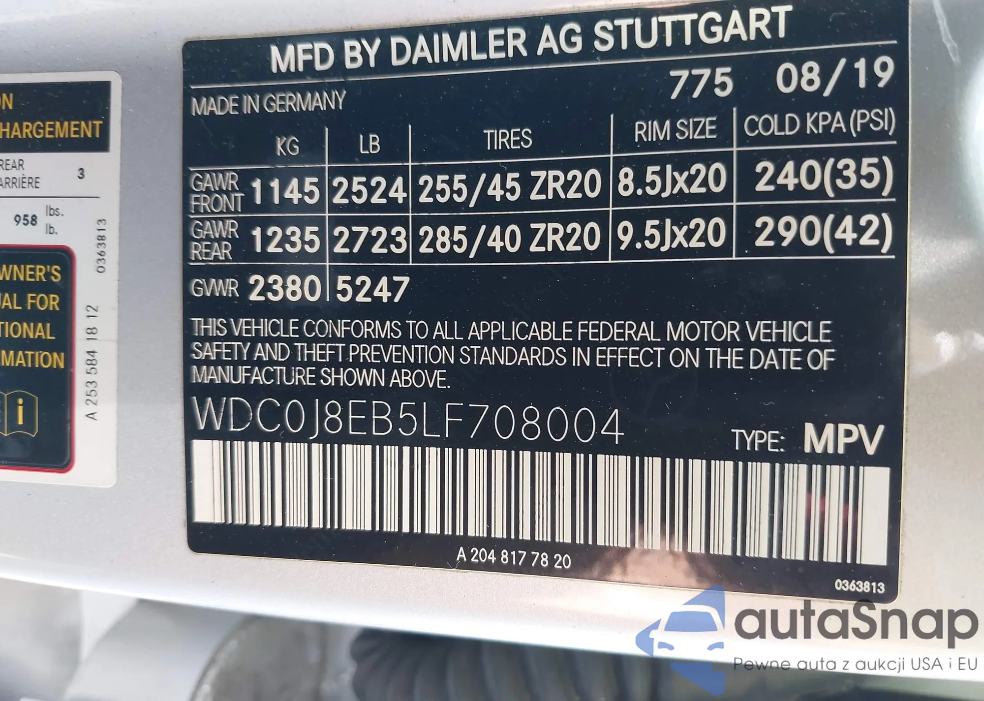 • VIN WDC0J8EB5LF708004