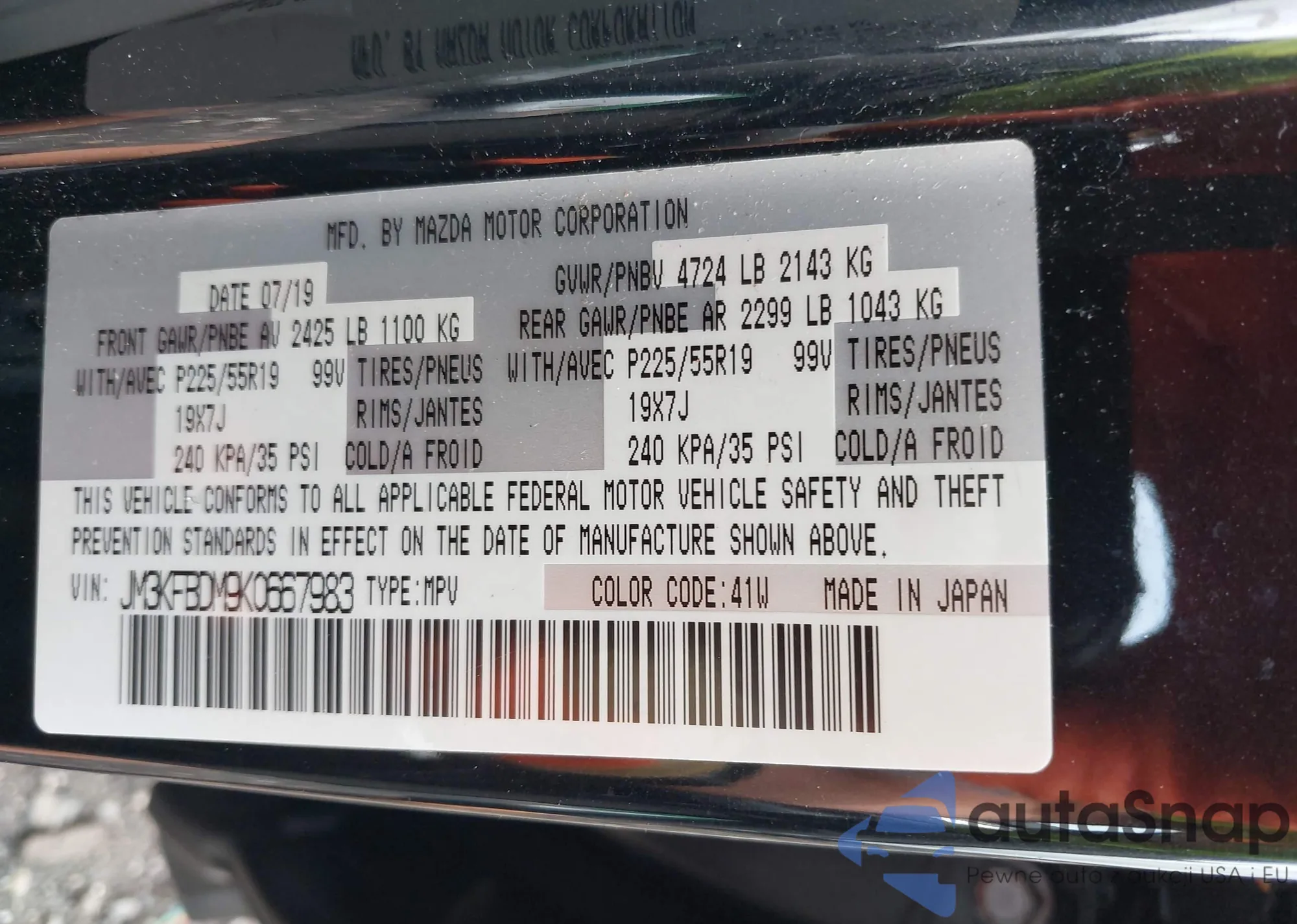 LOT: 42541336 VIN: JM3KFBDM9K0667983