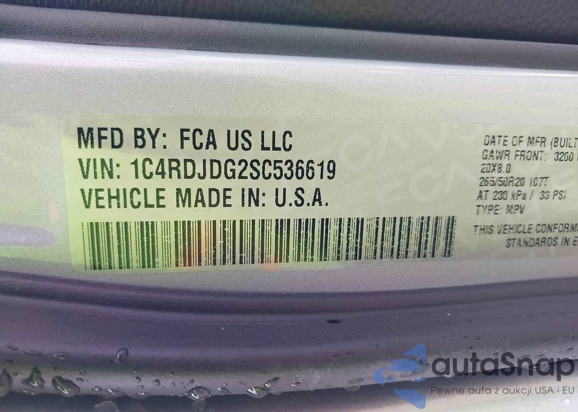 • VIN 1C4RDJDG2SC536619