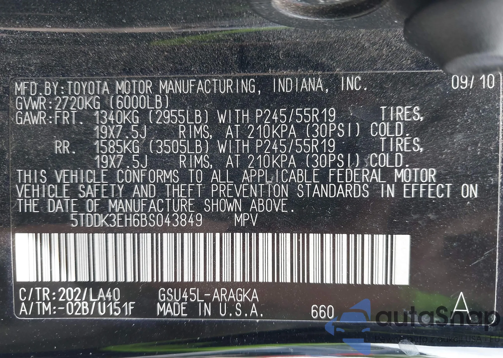 • VIN 5TDDK3EH6BS043849